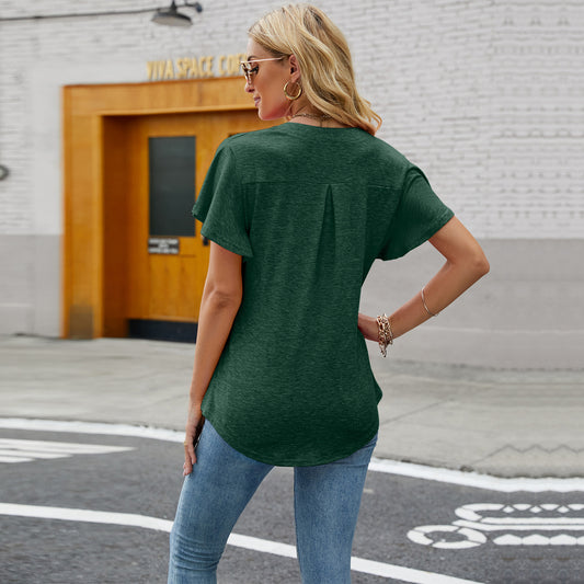 Women's V Neck Flying Sleeve Swallowtail T Shirt Short Sleeved Top