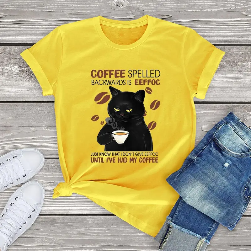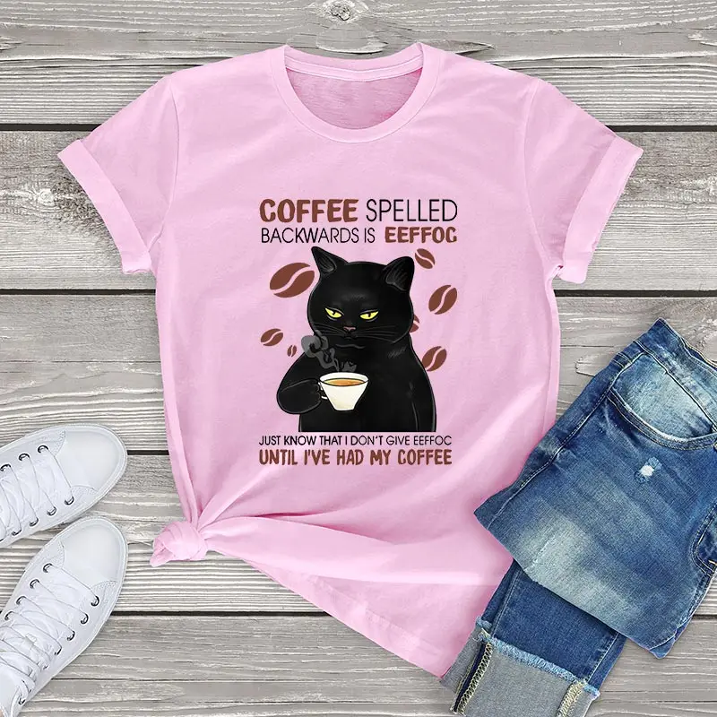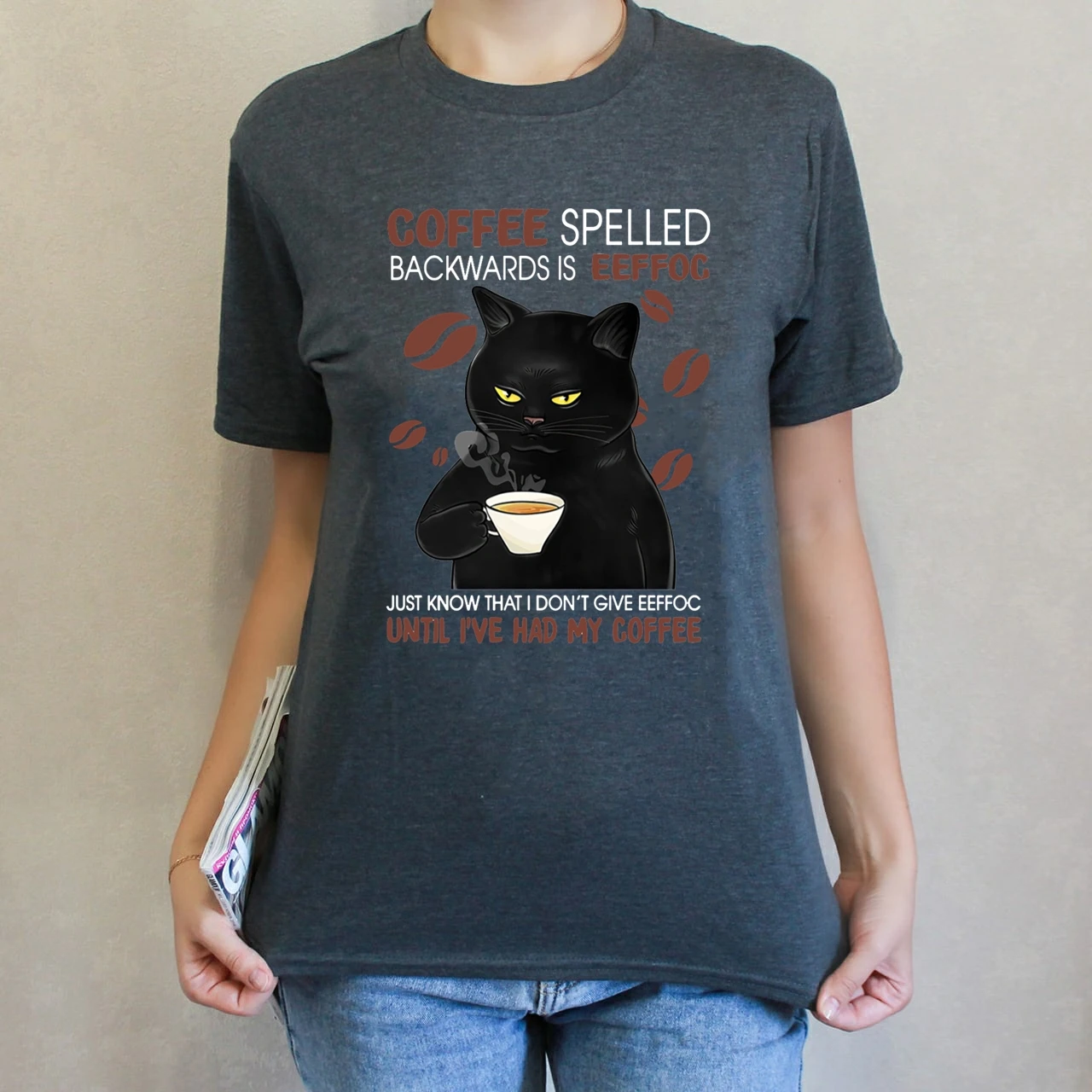 100% cotton t shirt women Black Cat Coffee Spelled Backwards Is Funny Cat Coffee tops unisex T Shirt harajuku women's tees gift