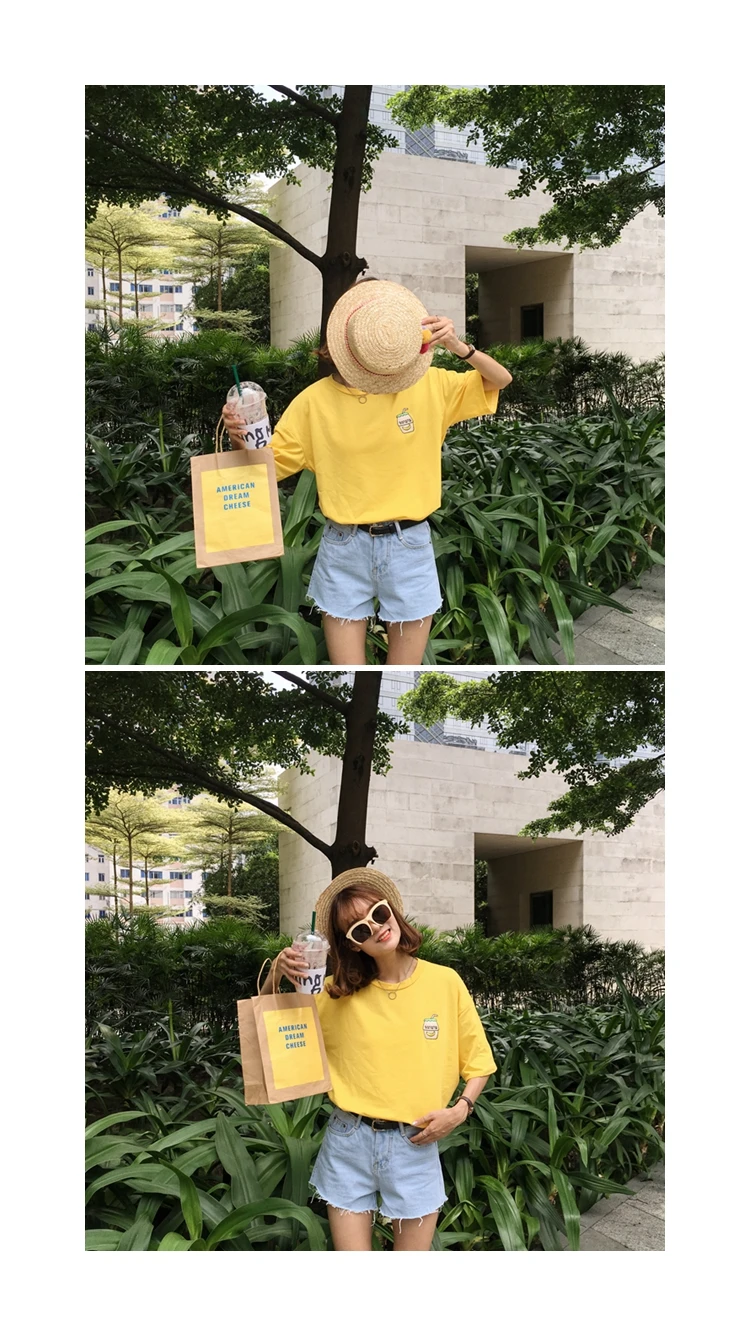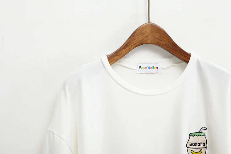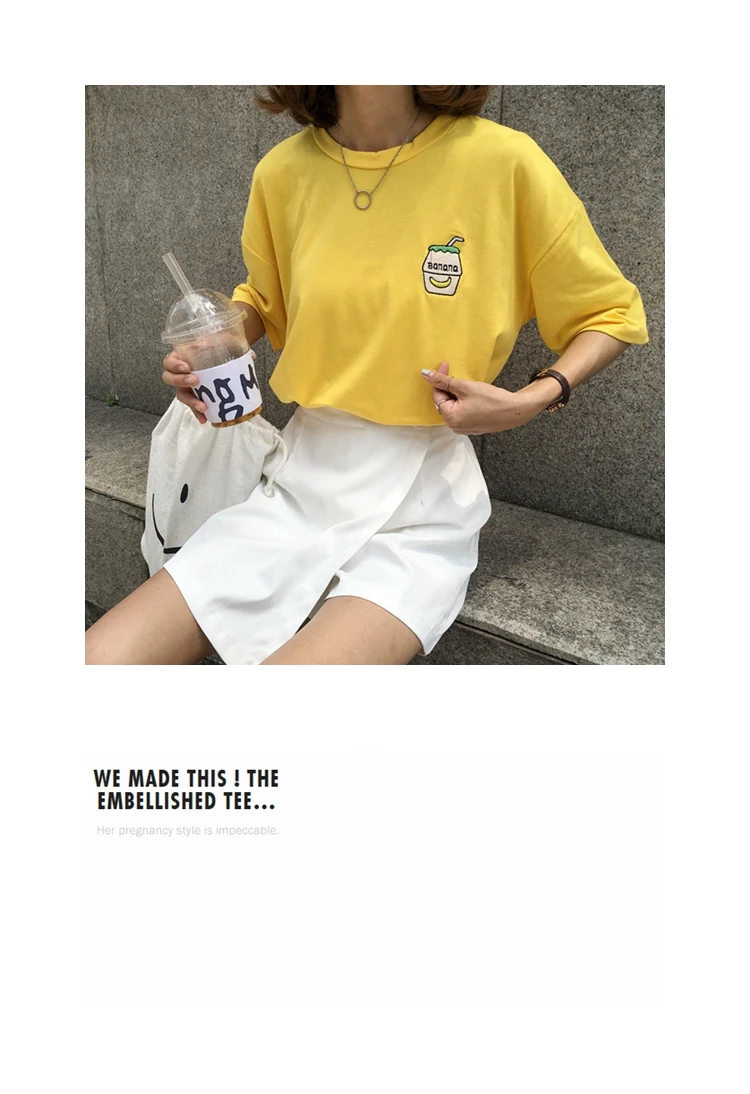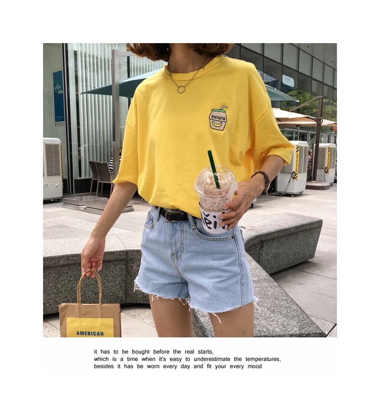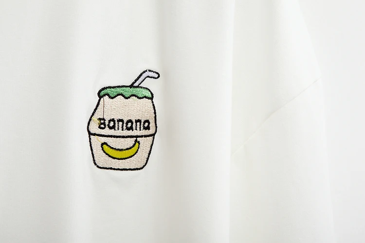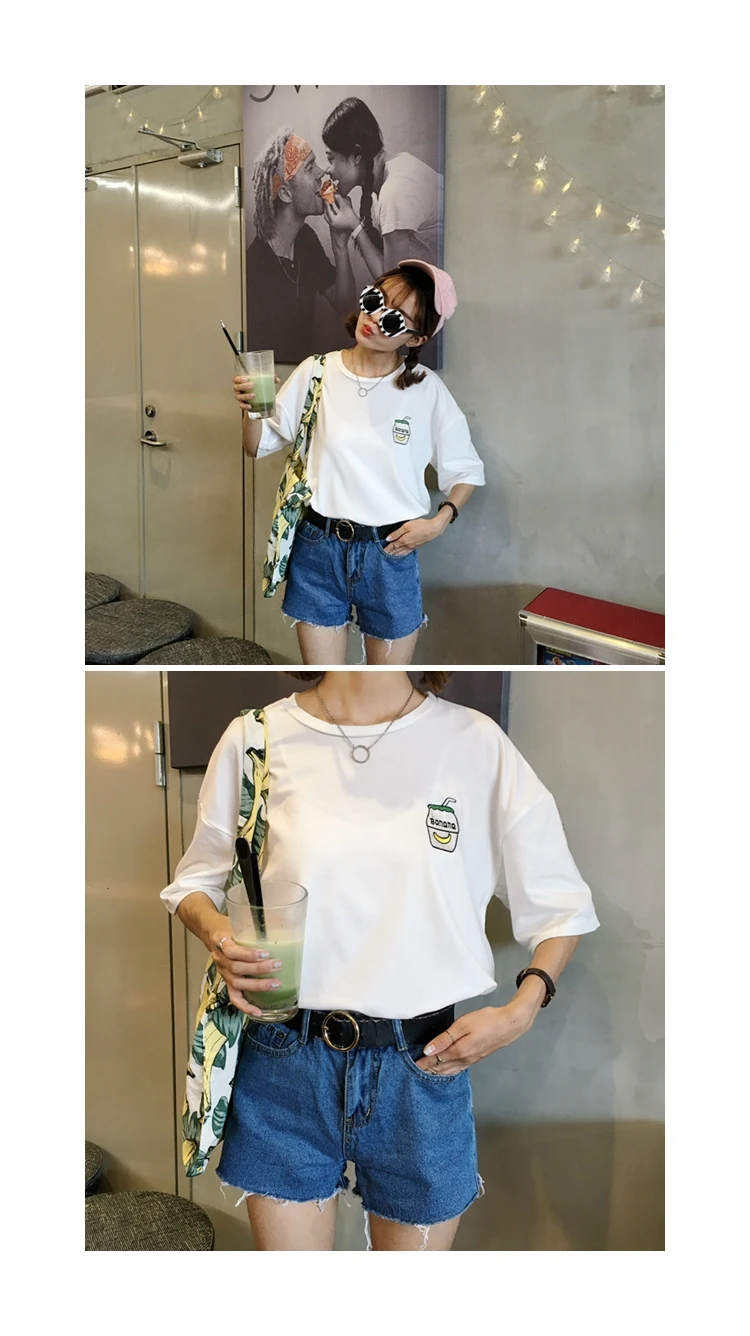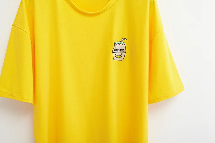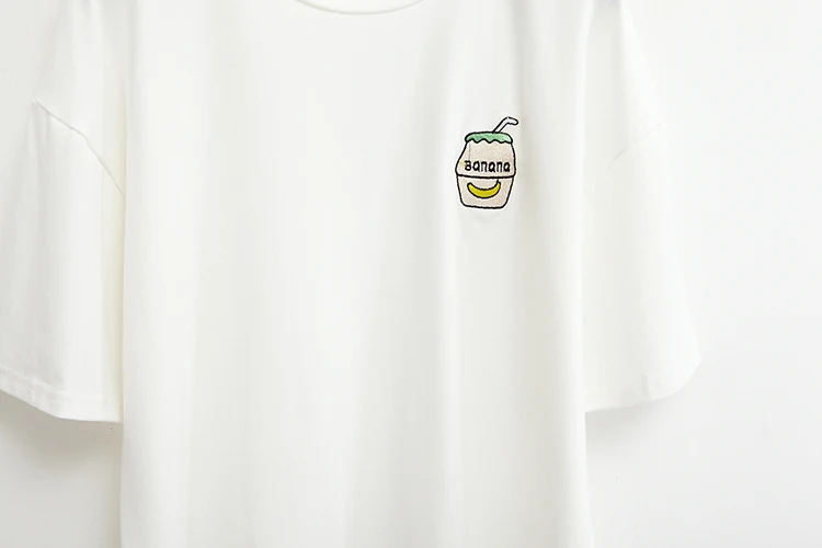 Summer New Cute Banana Milk Embroidered Simple All Match Short Sleeve Female T-shirts