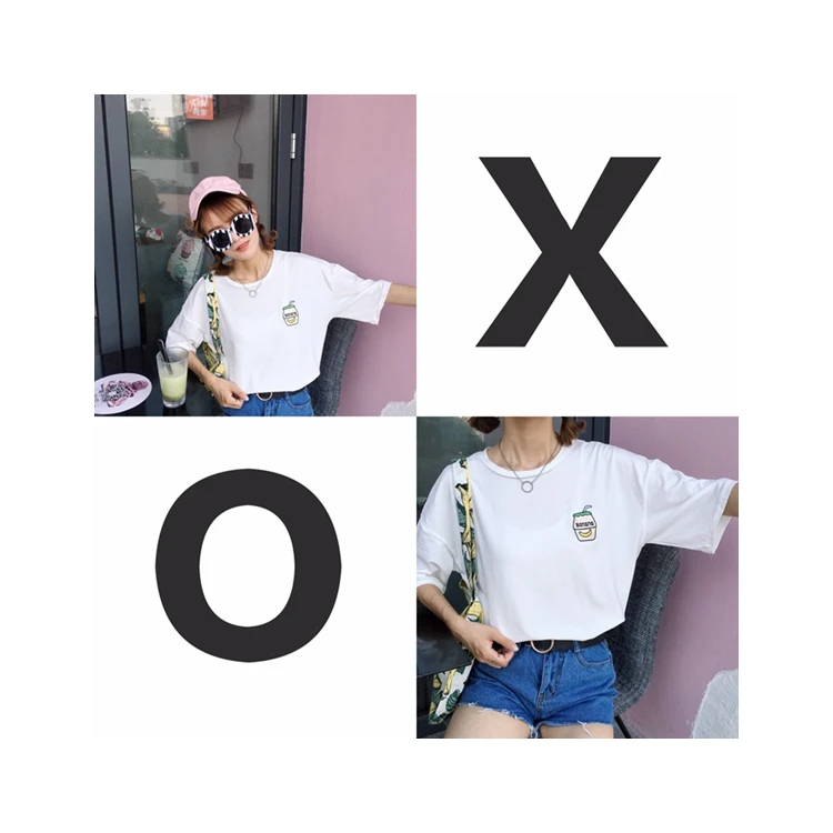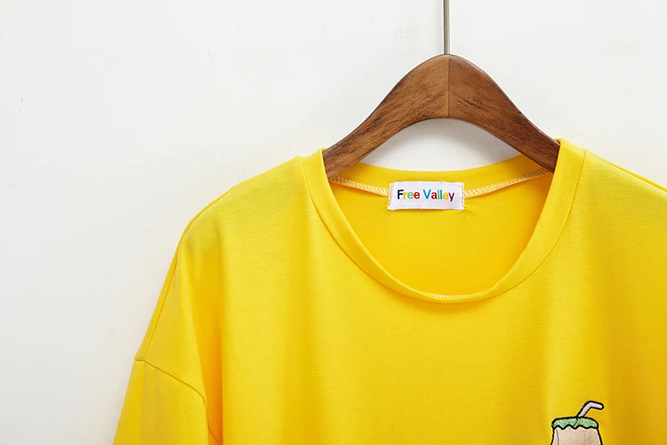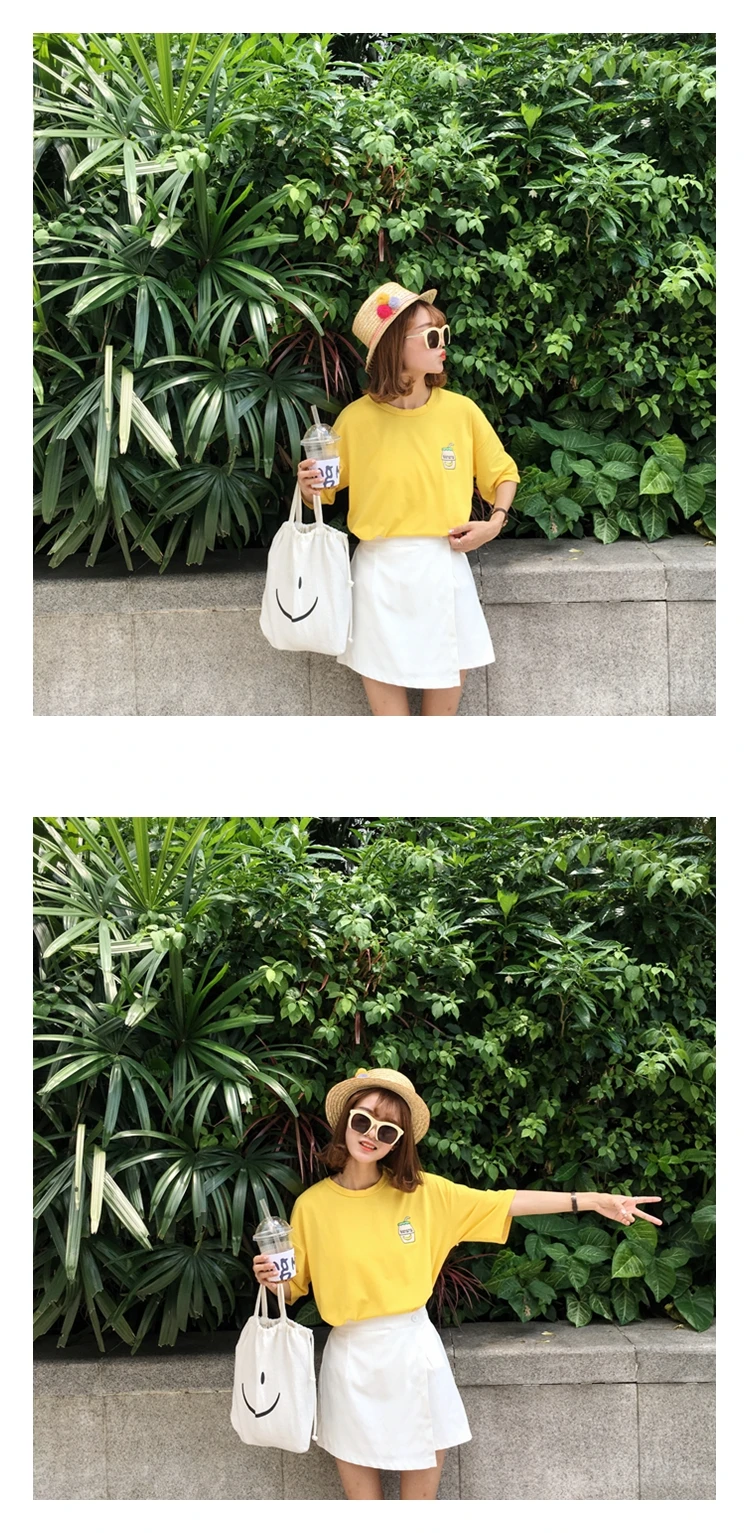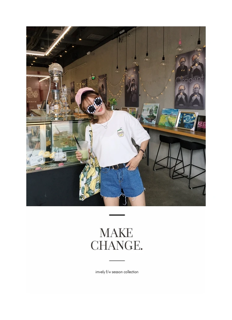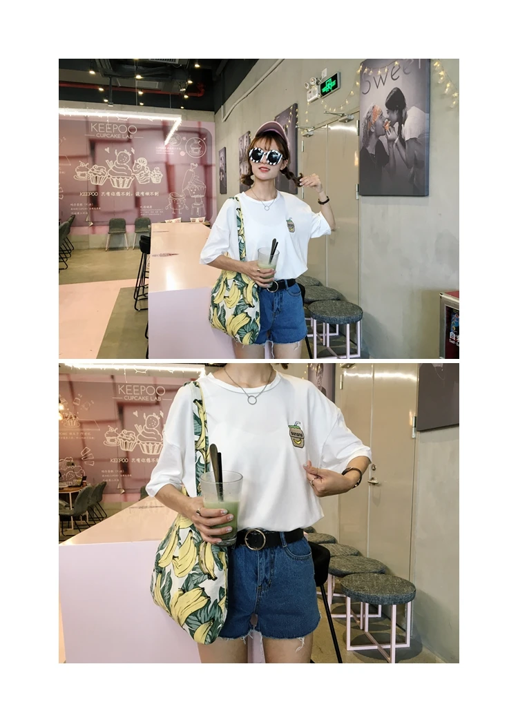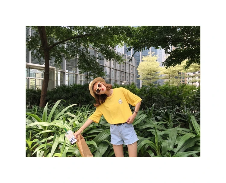 Summer New Cute Banana Milk Embroidered Simple All Match Short Sleeve Female T-shirts