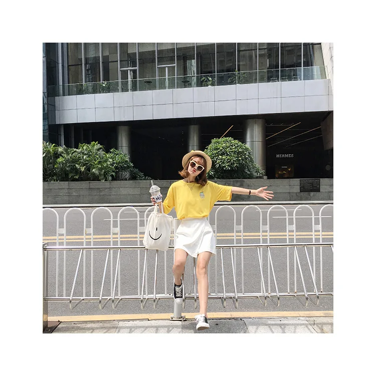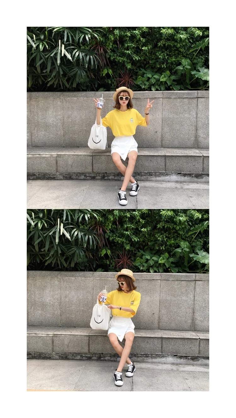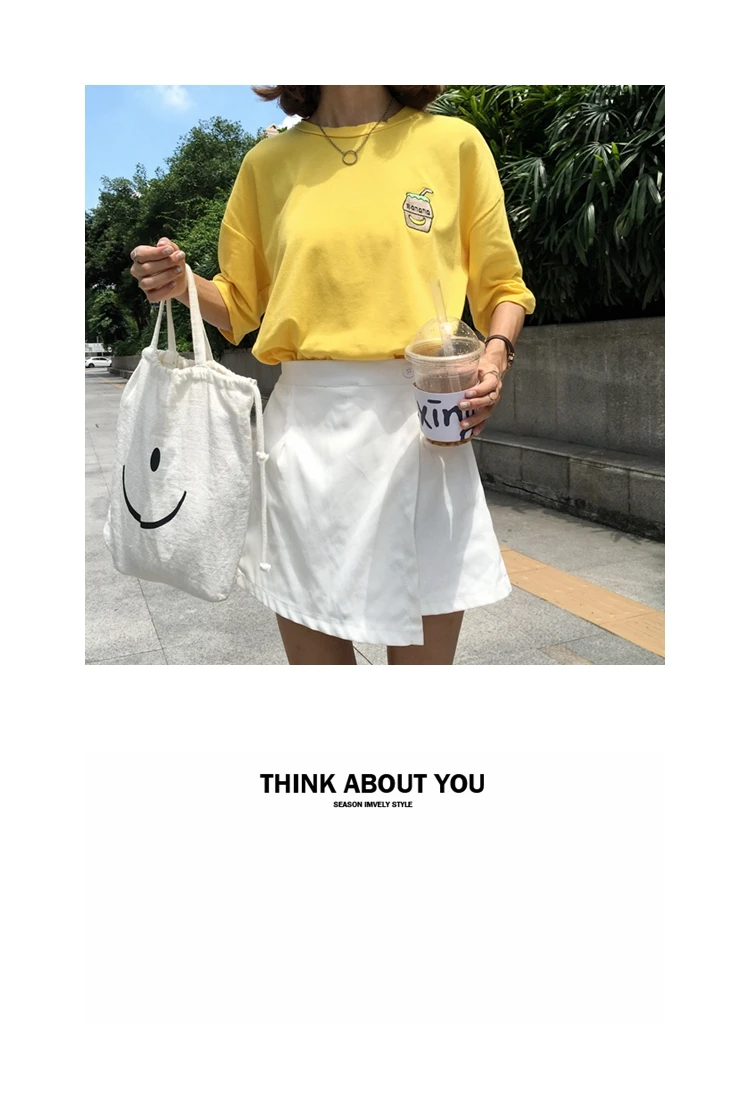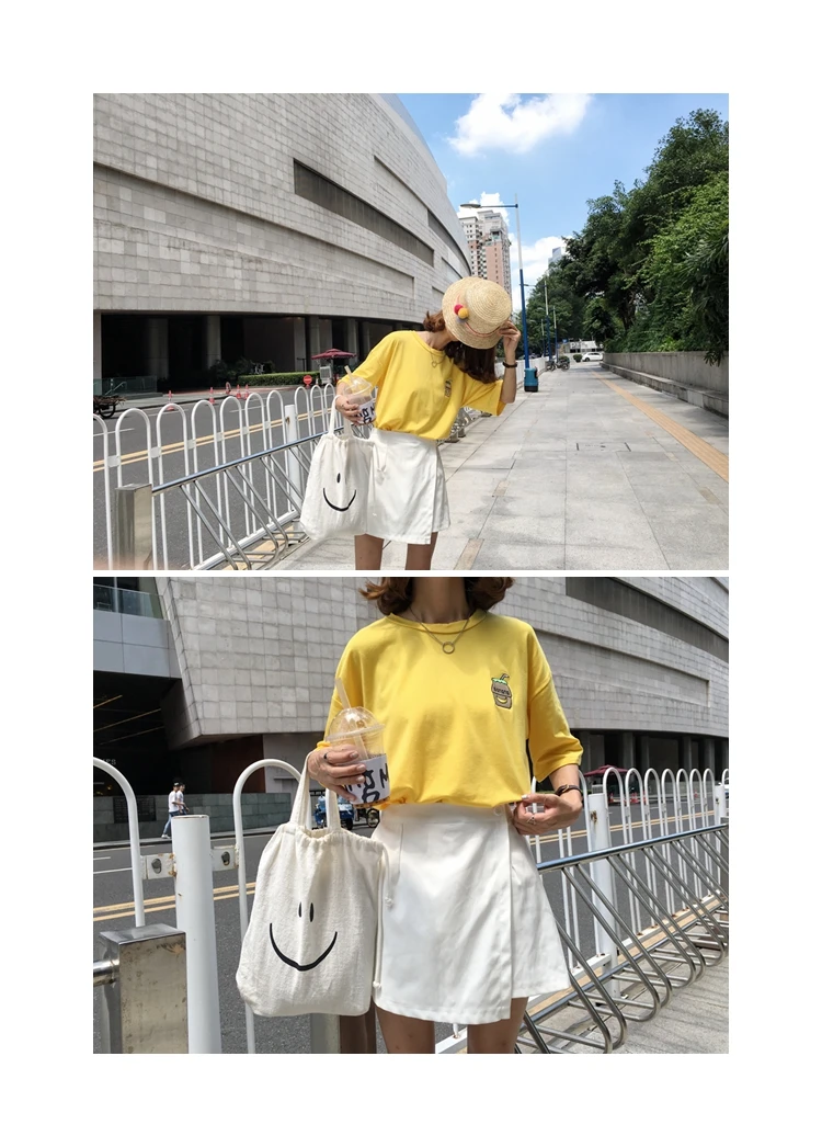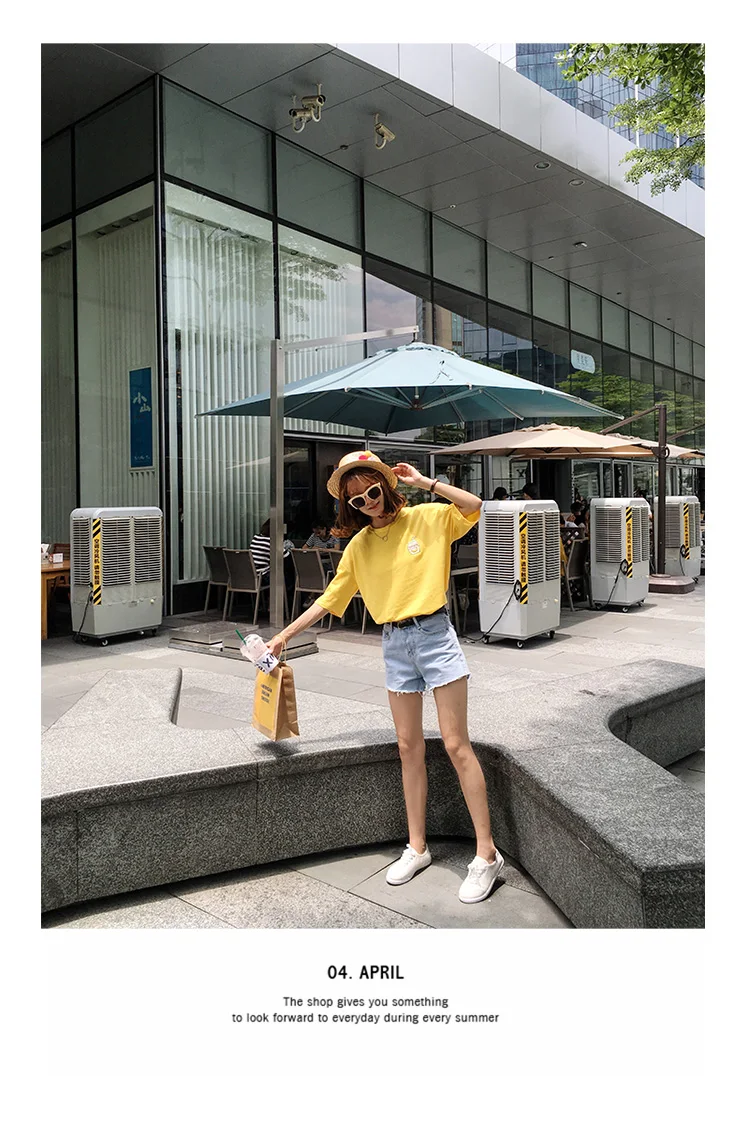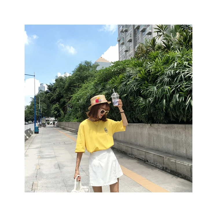 Summer New Cute Banana Milk Embroidered Simple All Match Short Sleeve Female T-shirts