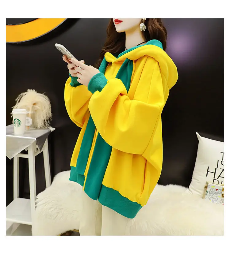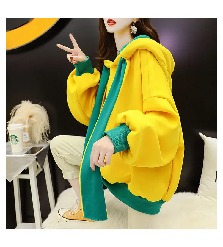 Polar fleece hooded spring and autumn casual hooded sweatshirt loose long sleeve hoodie pullover women's wool hooded top