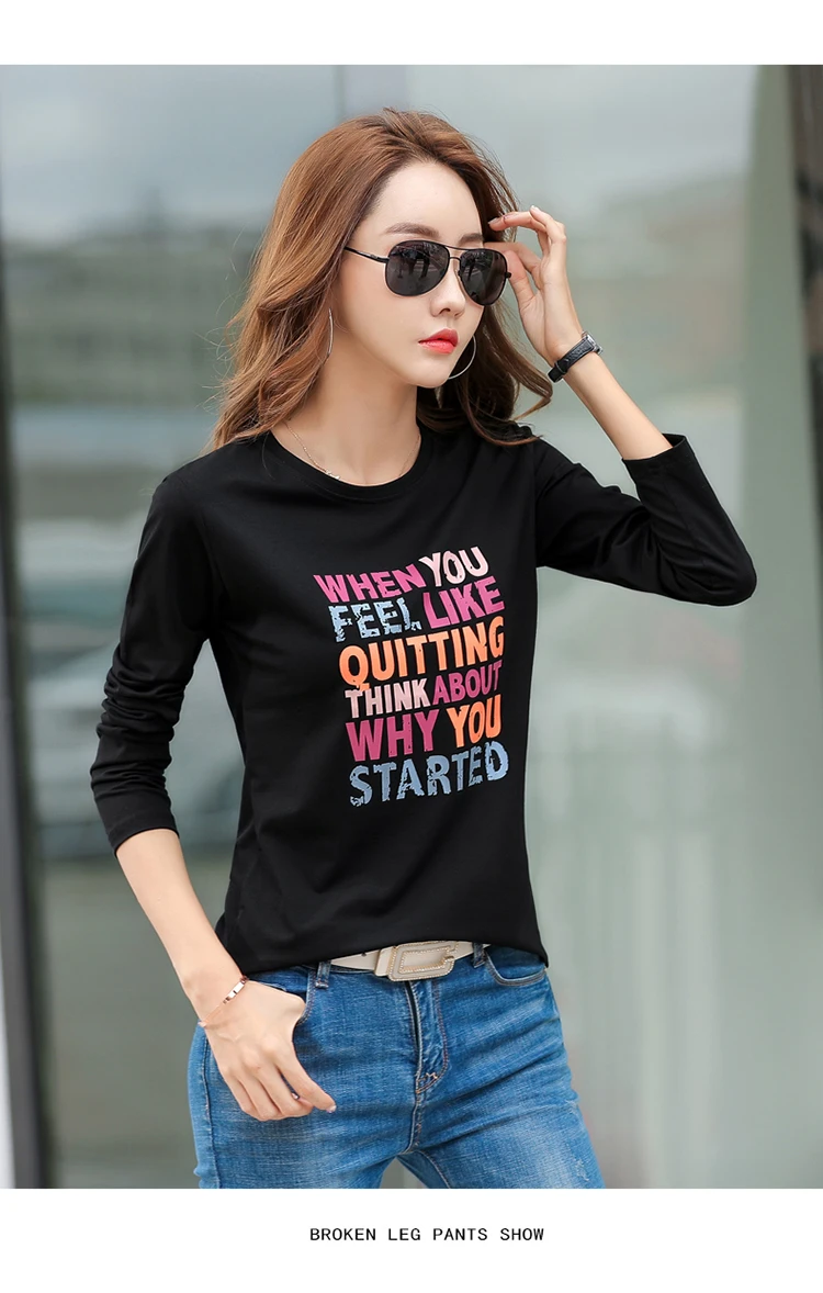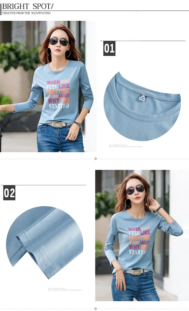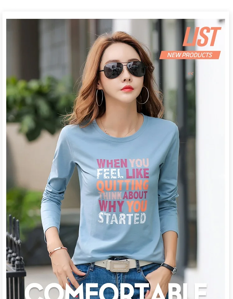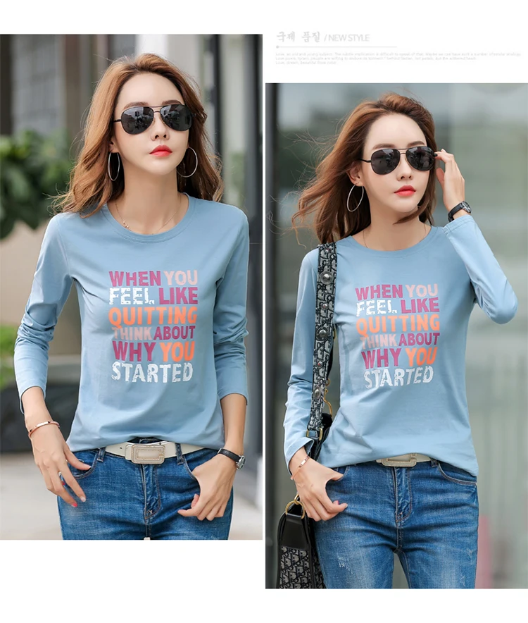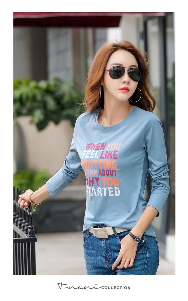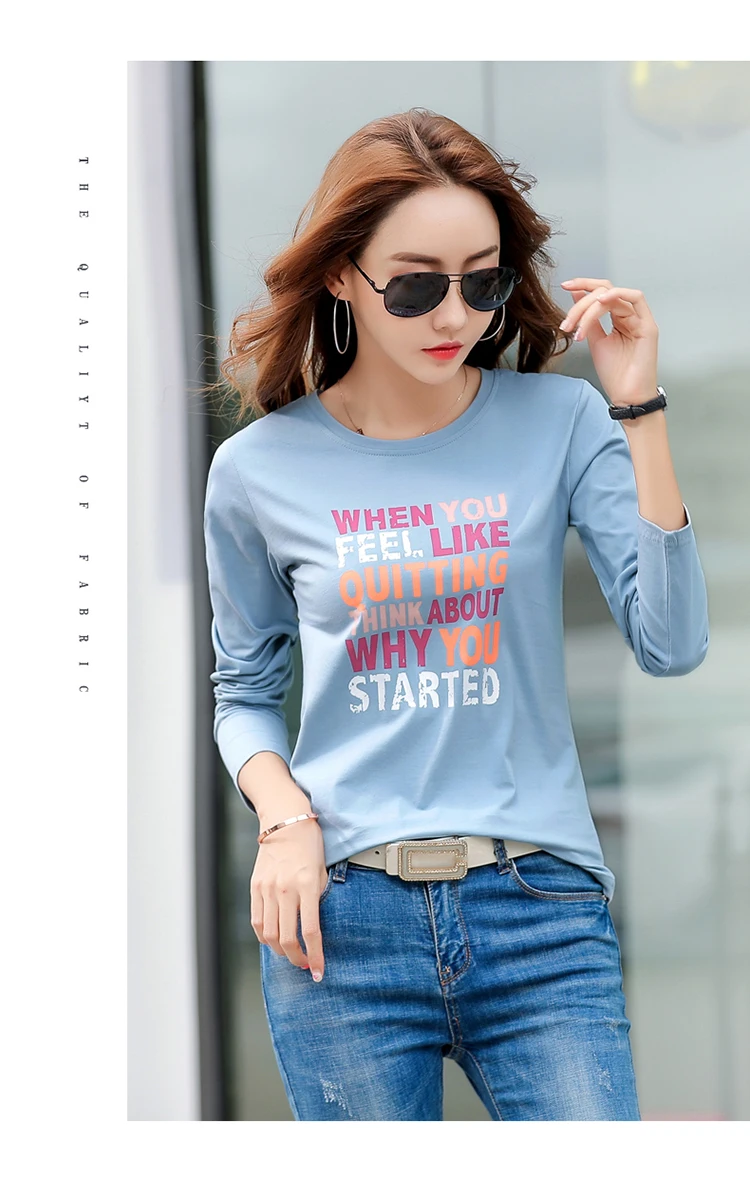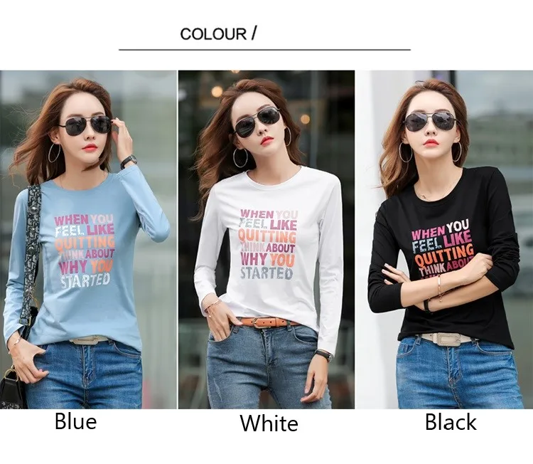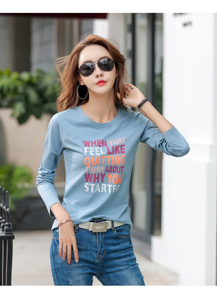 Autumn Winter 2020 Casual Cotton T-shirt Women Letter Print O-neck Long Sleeve Tee shirt Femme Blue Black White comfortable Tops