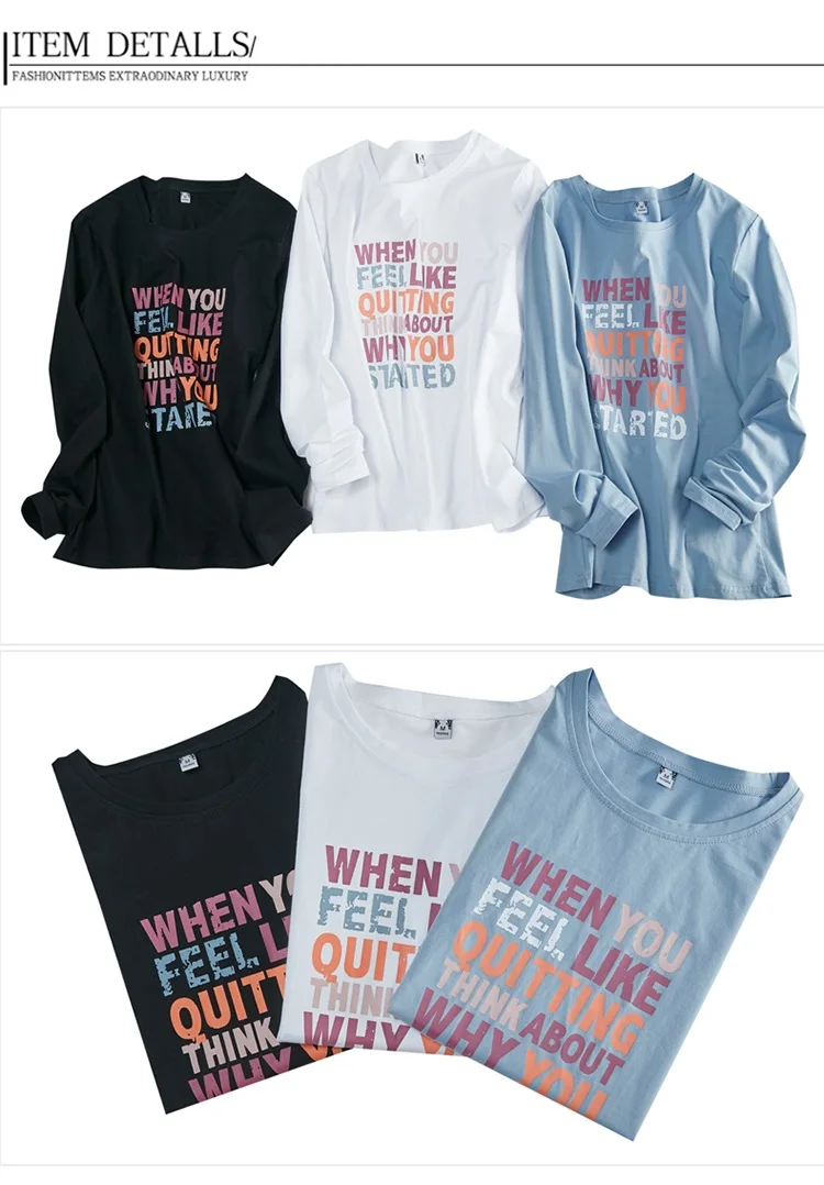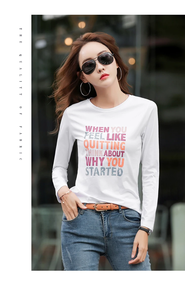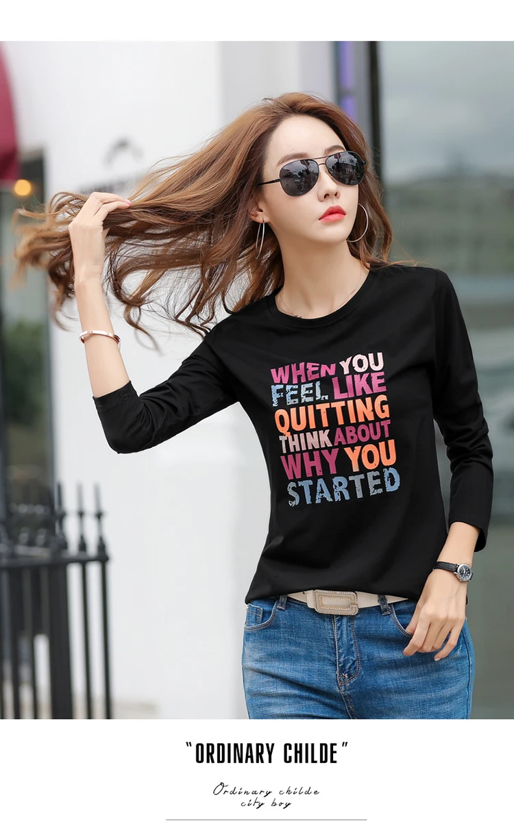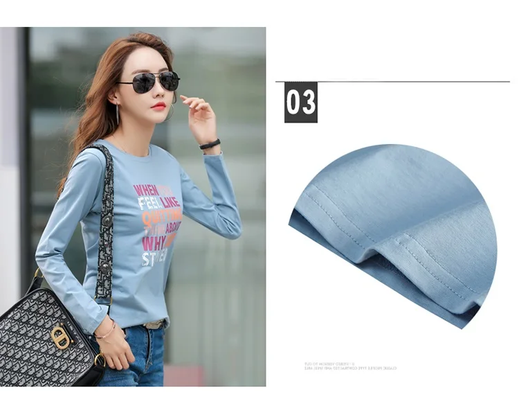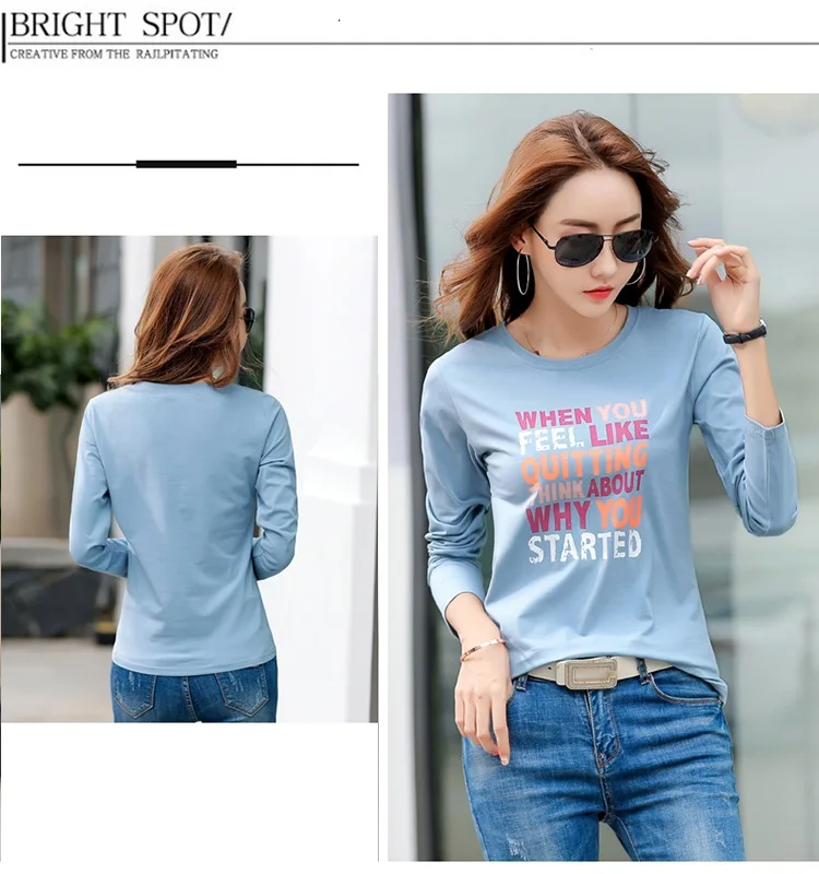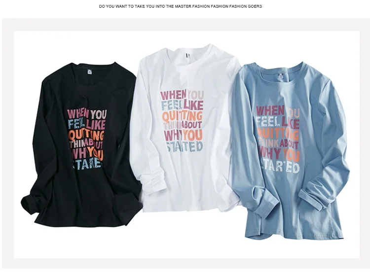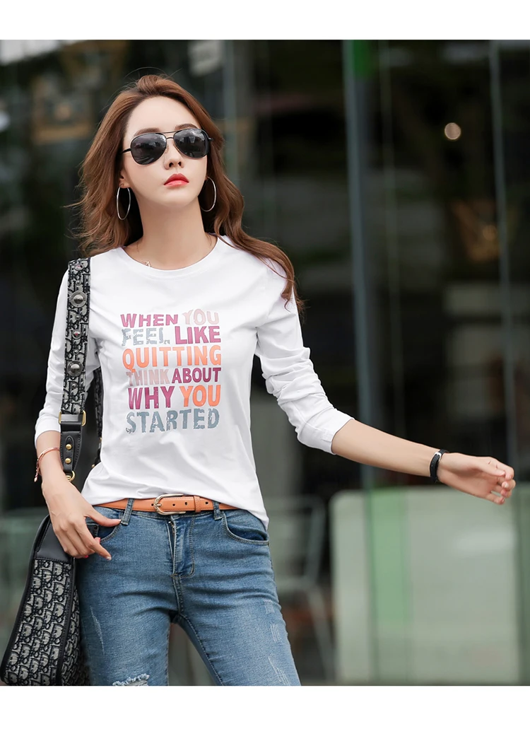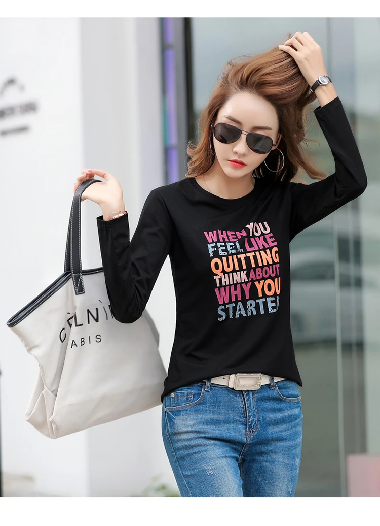Autumn Winter 2020 Casual Cotton T-shirt Women Letter Print O-neck Long Sleeve Tee shirt Femme Blue Black White comfortable Tops