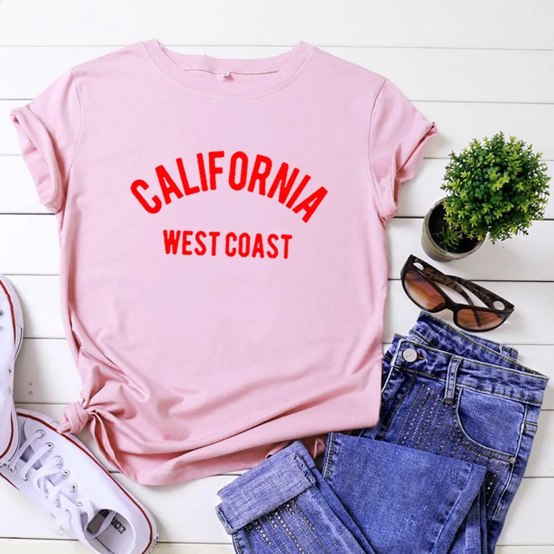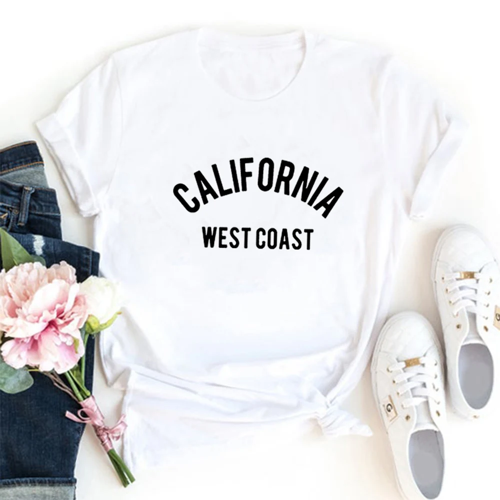 California West Coast Summer T Shirt Women Short Sleeve Funny Tshirt Women Cotton Tee Shirt Femme T-shirt White Camisetas Mujer