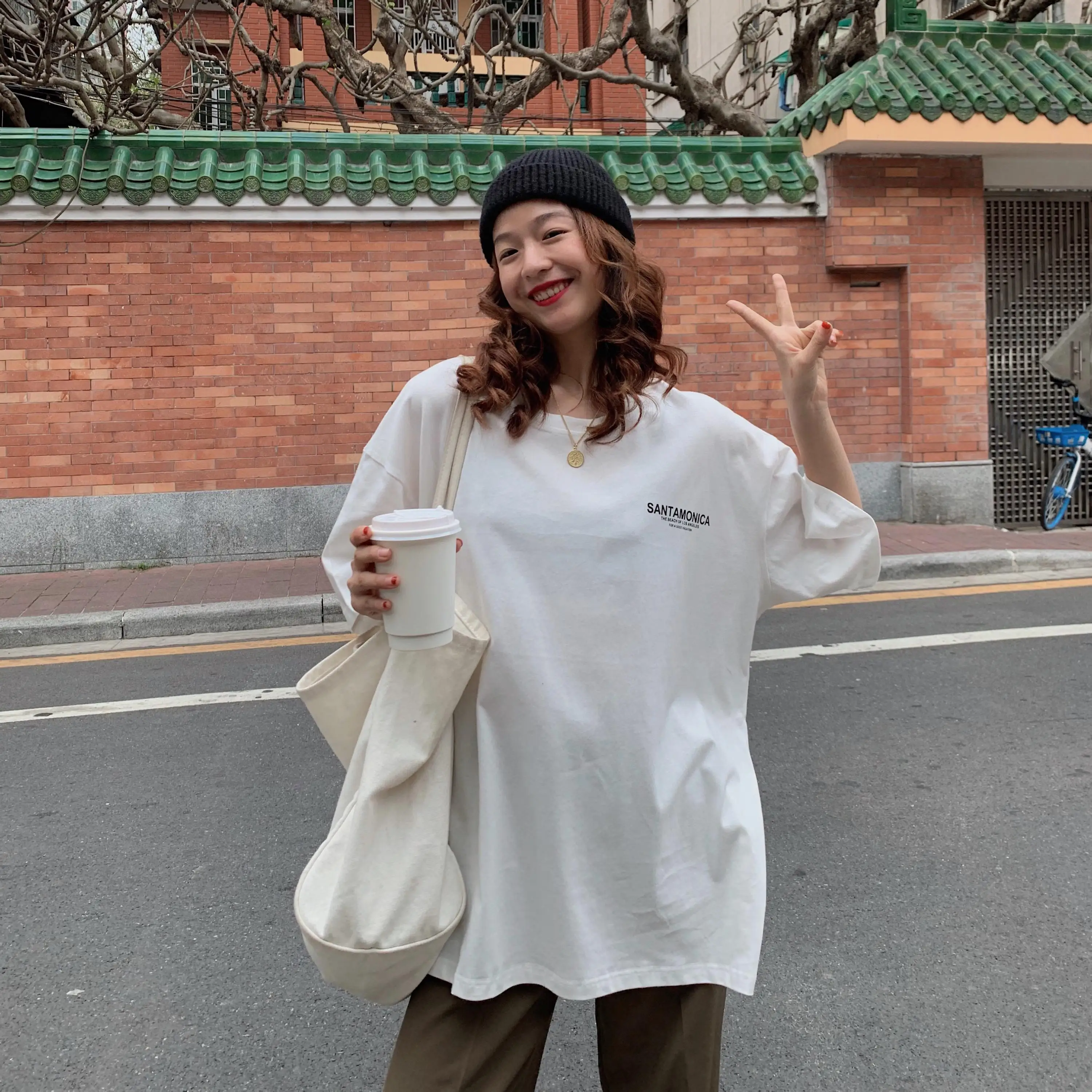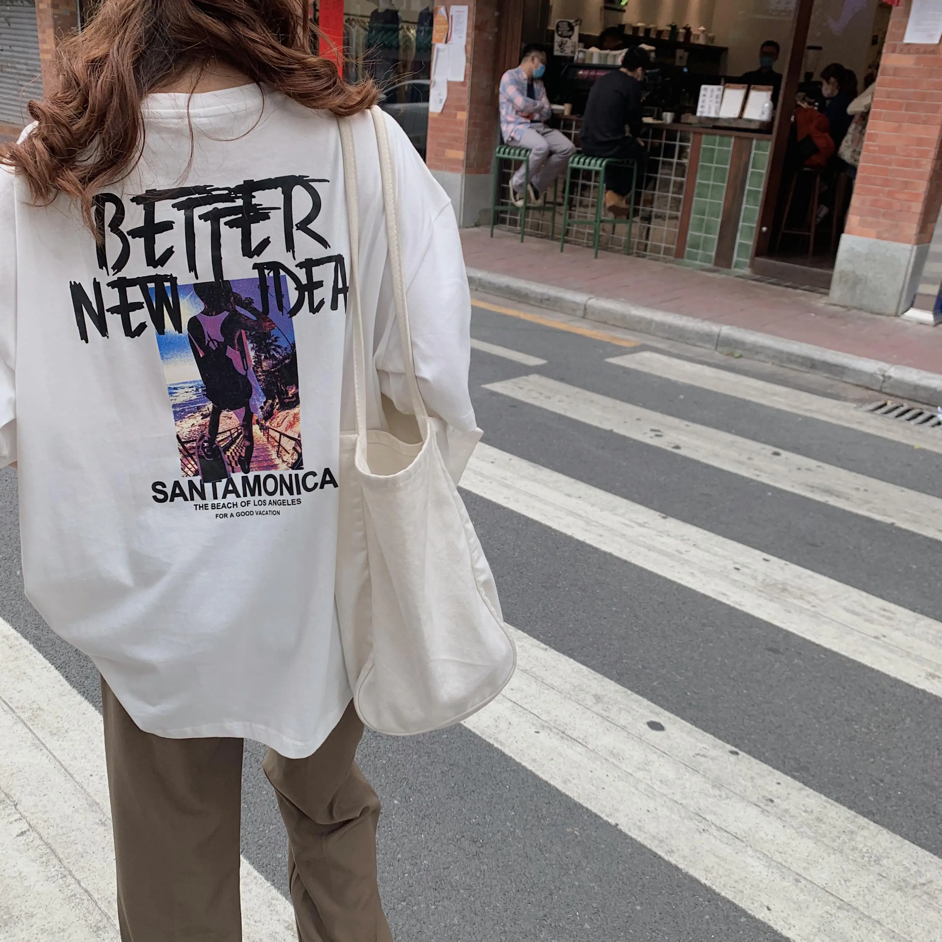 Casual Character Printed Fashion Loose Oversize Korean Style 2021 Spring New Short Sleeve Women Top T-shirts