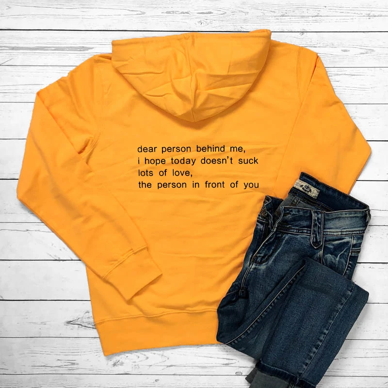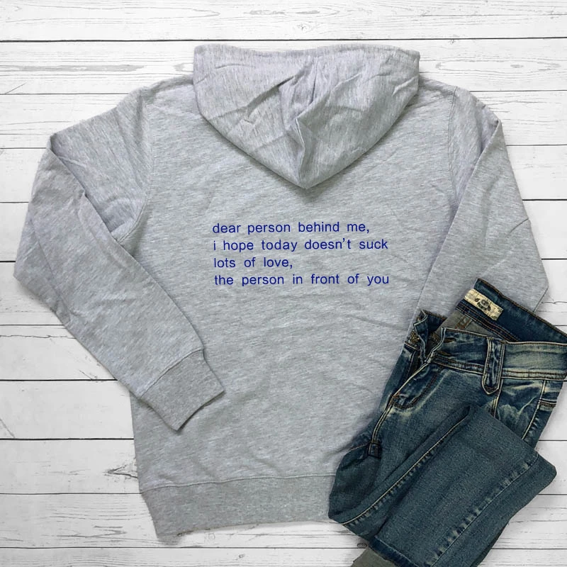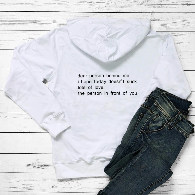 Dear Person Behind Me Hoodies Casual Unisex Long Sleeve Slogan Hooded Sweatshirts Harajuku Women Tumblr Jumper Pullovers