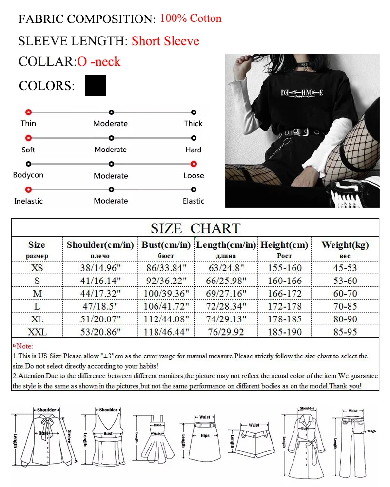 Death Note Aesthetic Gothic Women T-shirt Streetwear Harajuku Summer Cotton Short Sleeve Unisex Kawaii Casual Tops Clothes