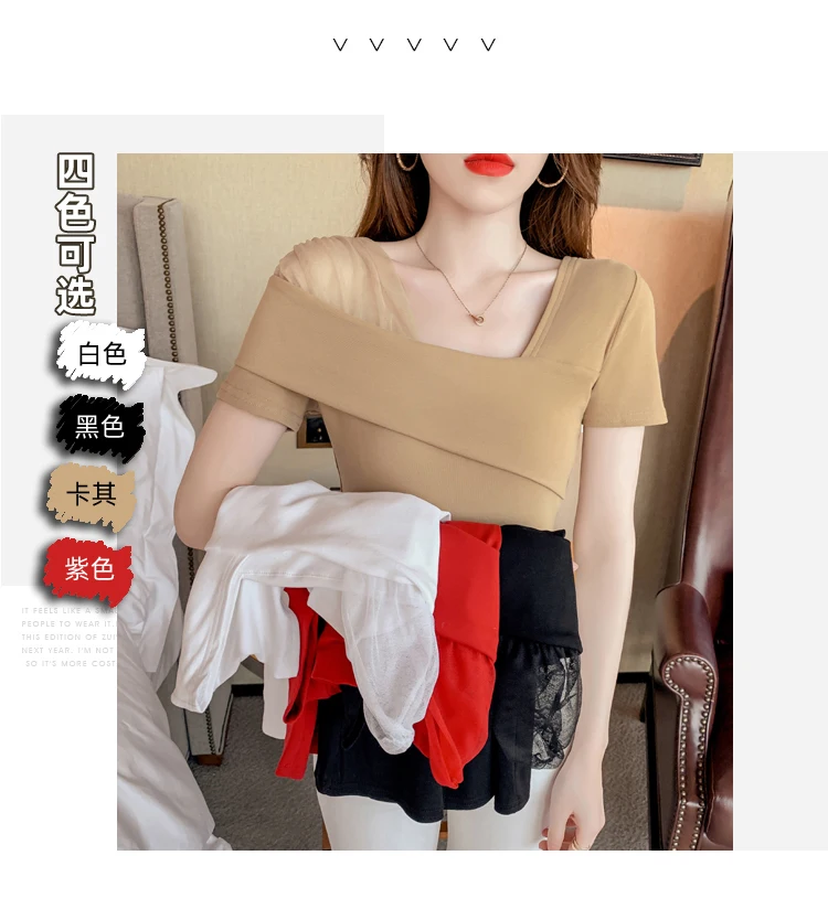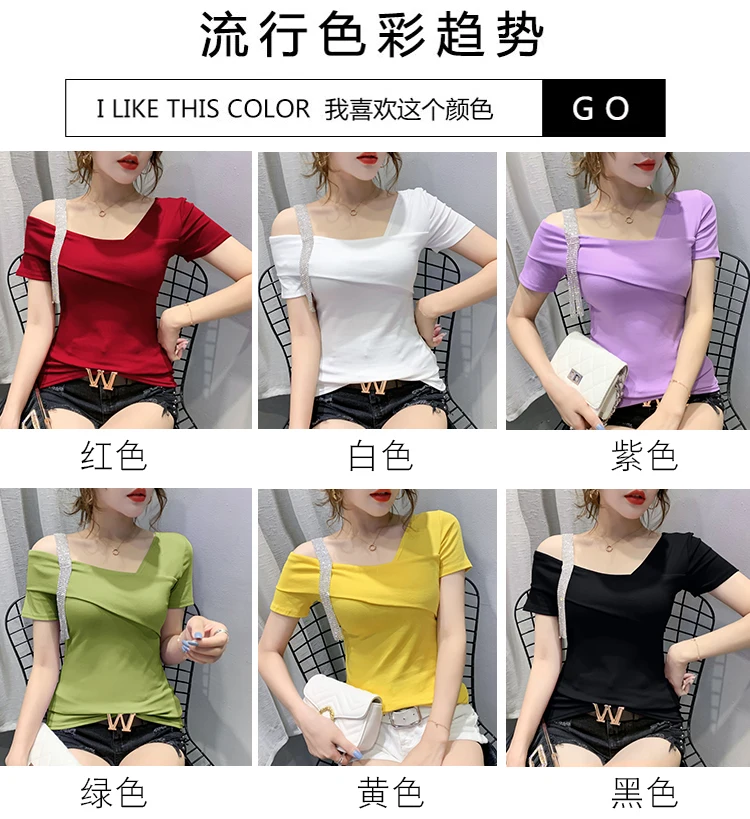 European Clothes Fashion Asymmetrical Hollow Out T-shirt Women 2020 New Summer Back Tops Ropa Mujer Bottoming Shirt Tees T02210