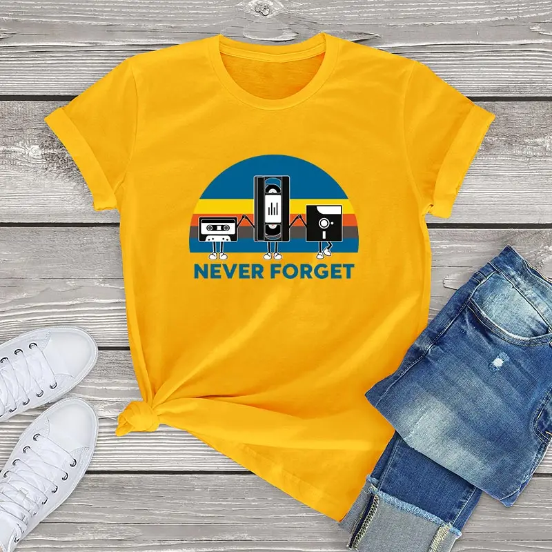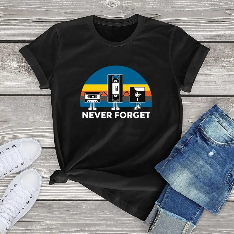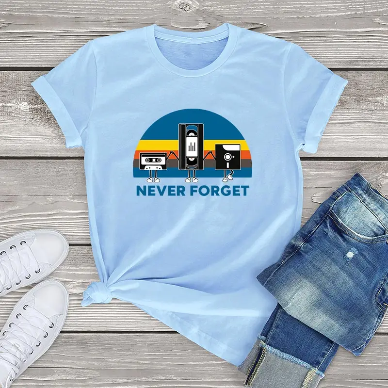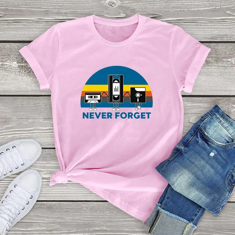 FLC 100% cotton kawaii Women T shirt for girls Never Forget Unisex T Shirt 90s kpop Girl Clothes Harajuku Female tee Tops xxxl