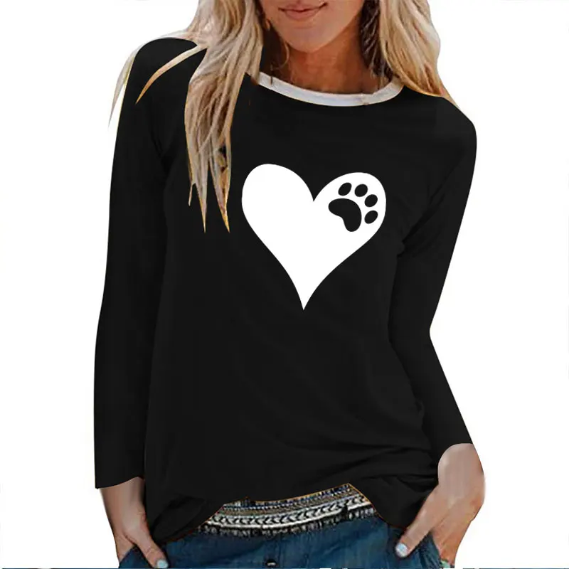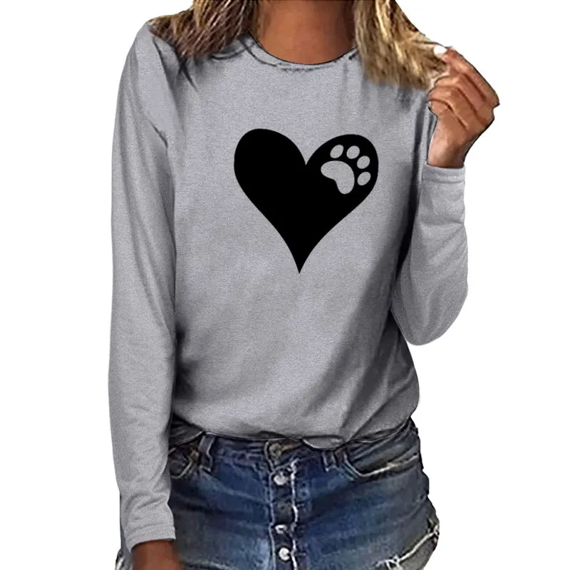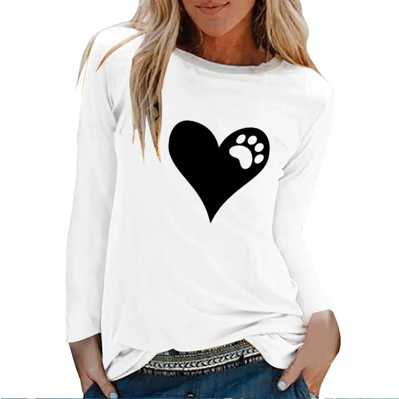 Heart Bear Paw Print Long Sleeve T-shirts Women Autumn