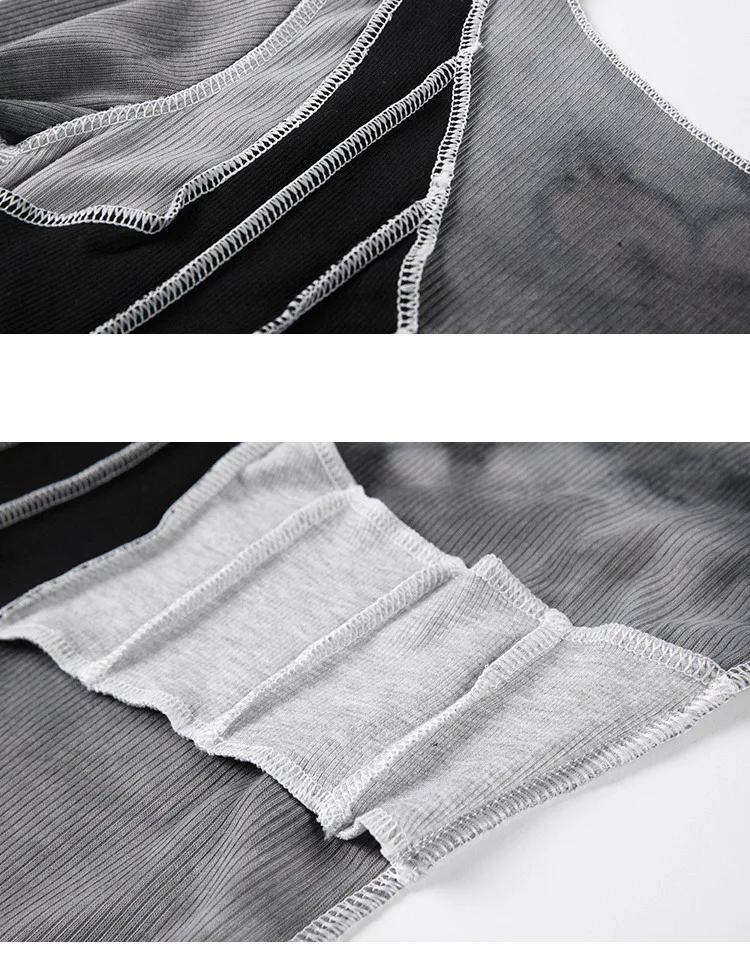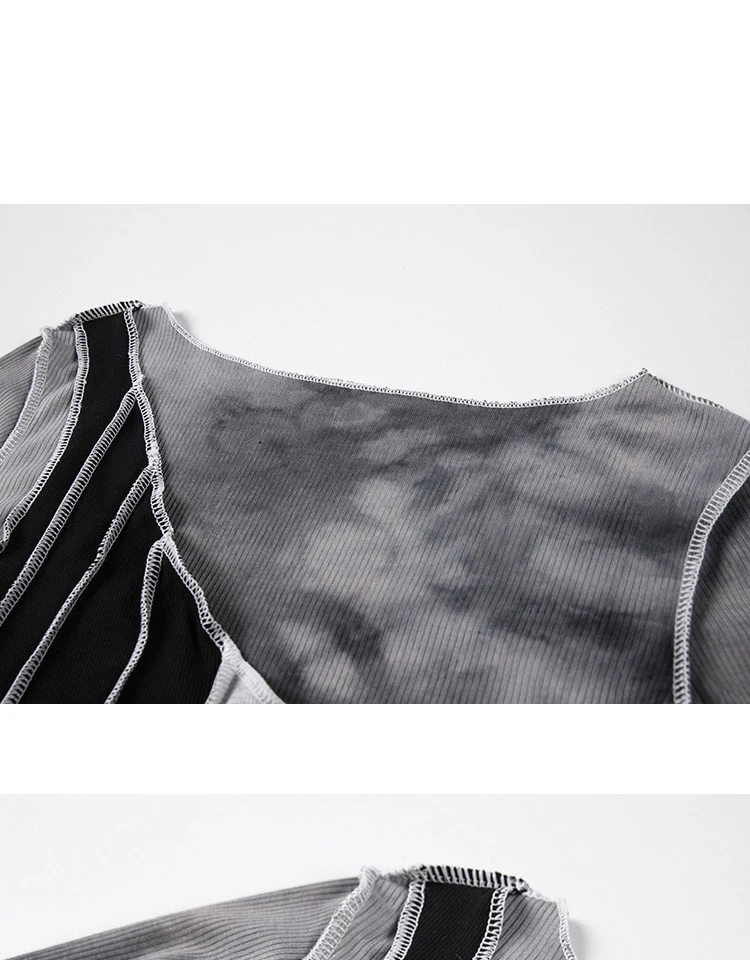 Irregular Patchwork Crop Bodycon T Shirt Women Long