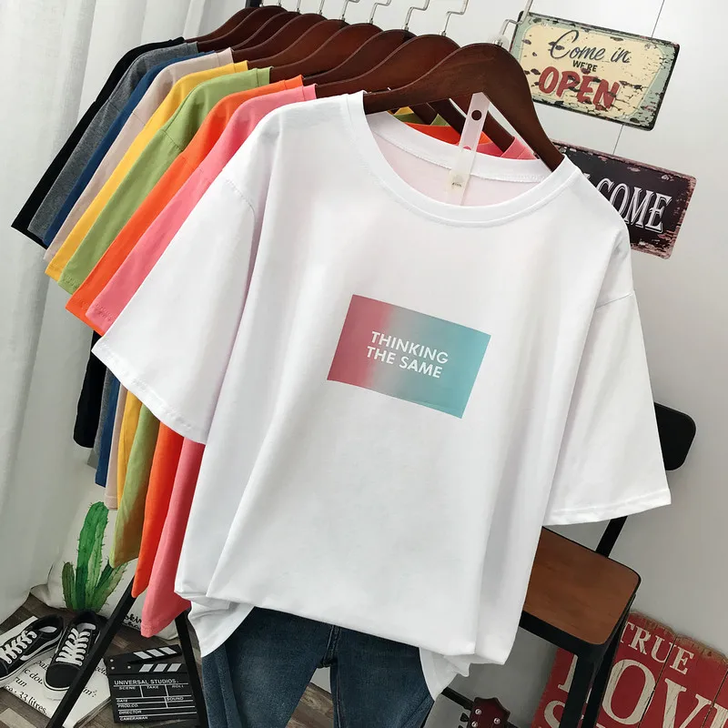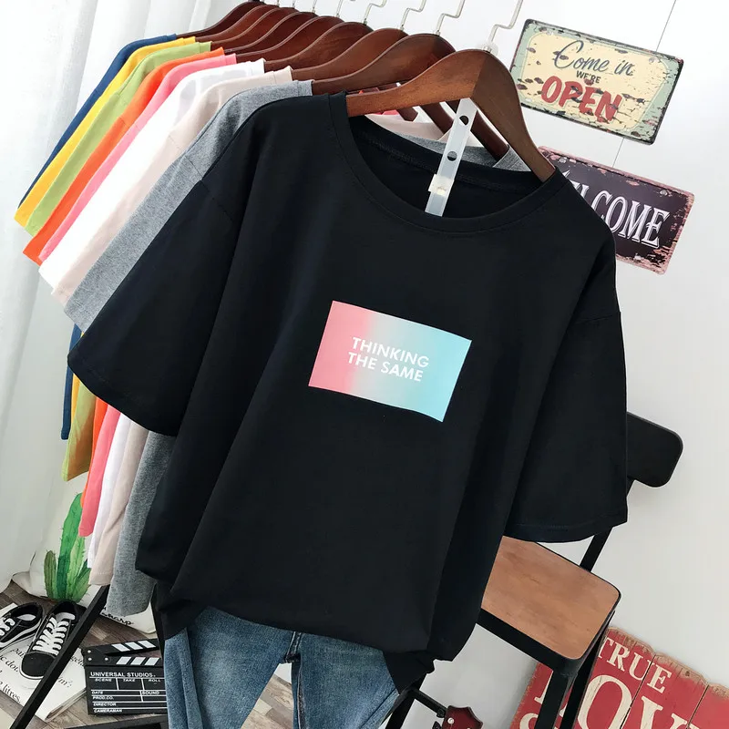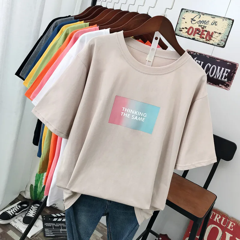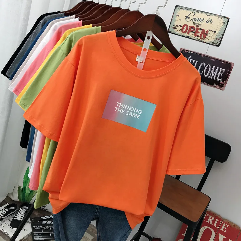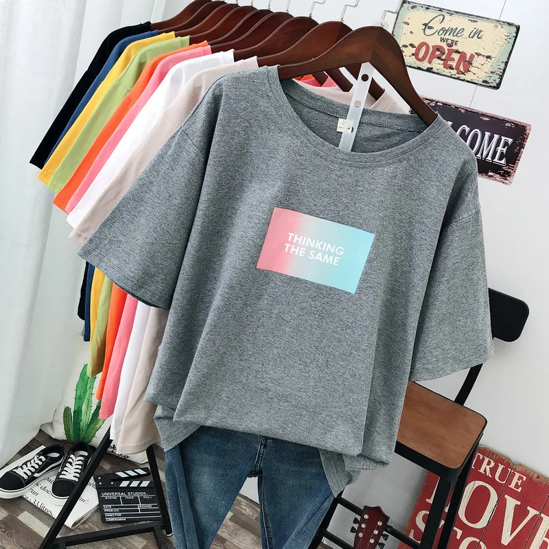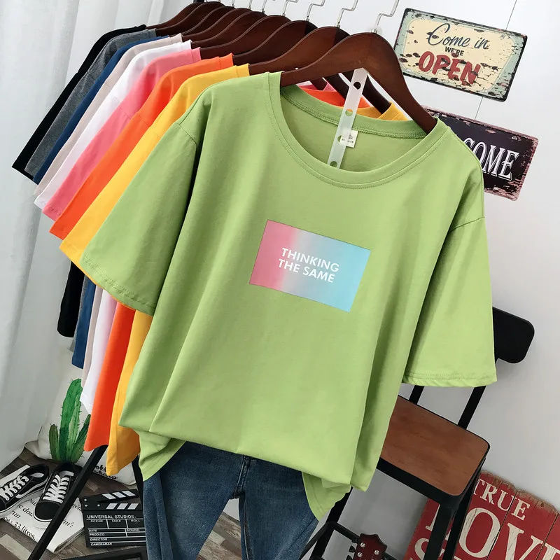Large size summer 2021 new street fashion Casual Women's T-Shirt loose Short sleeve Pullovers 100% cotton Letter printing Tops