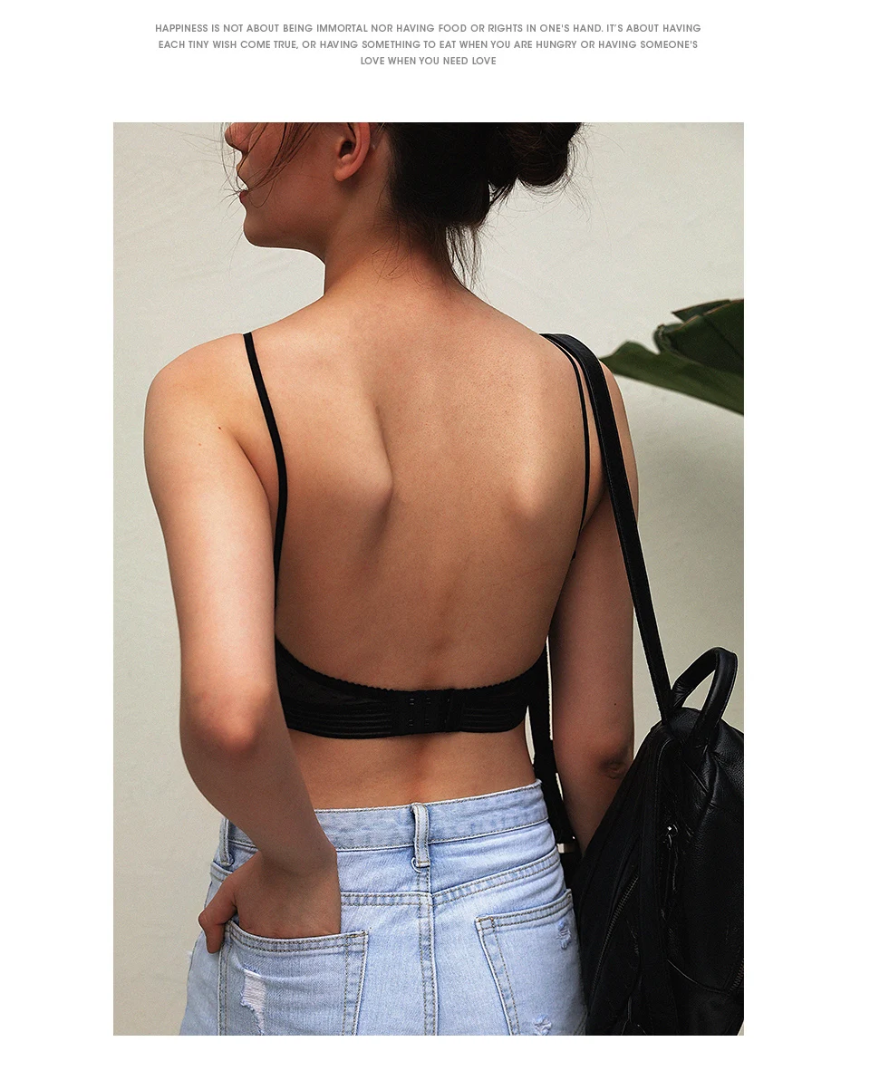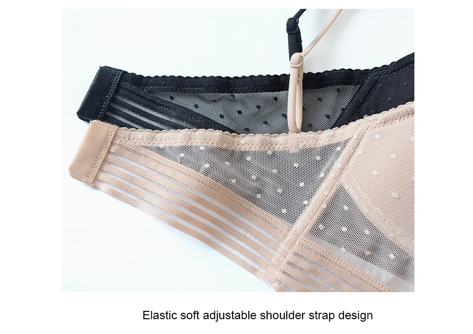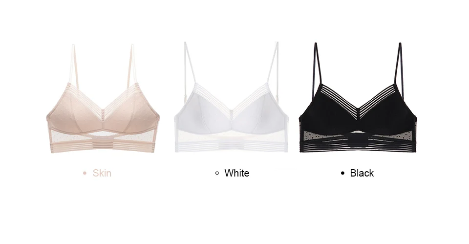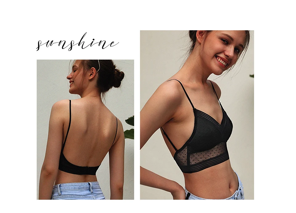 New Sexy Low Back Lace Bralette Black Bra Dot Mesh Ultra Thin Ladies Underwear Women Lingerie Sexy Crop Top Female Bra