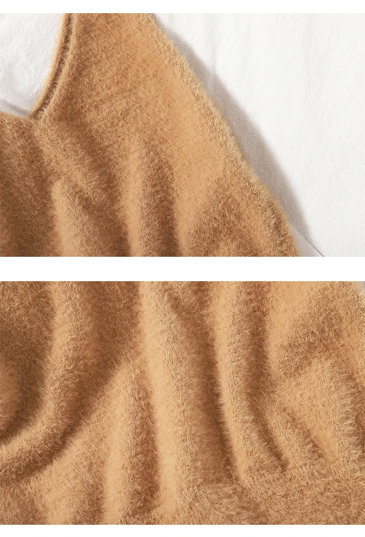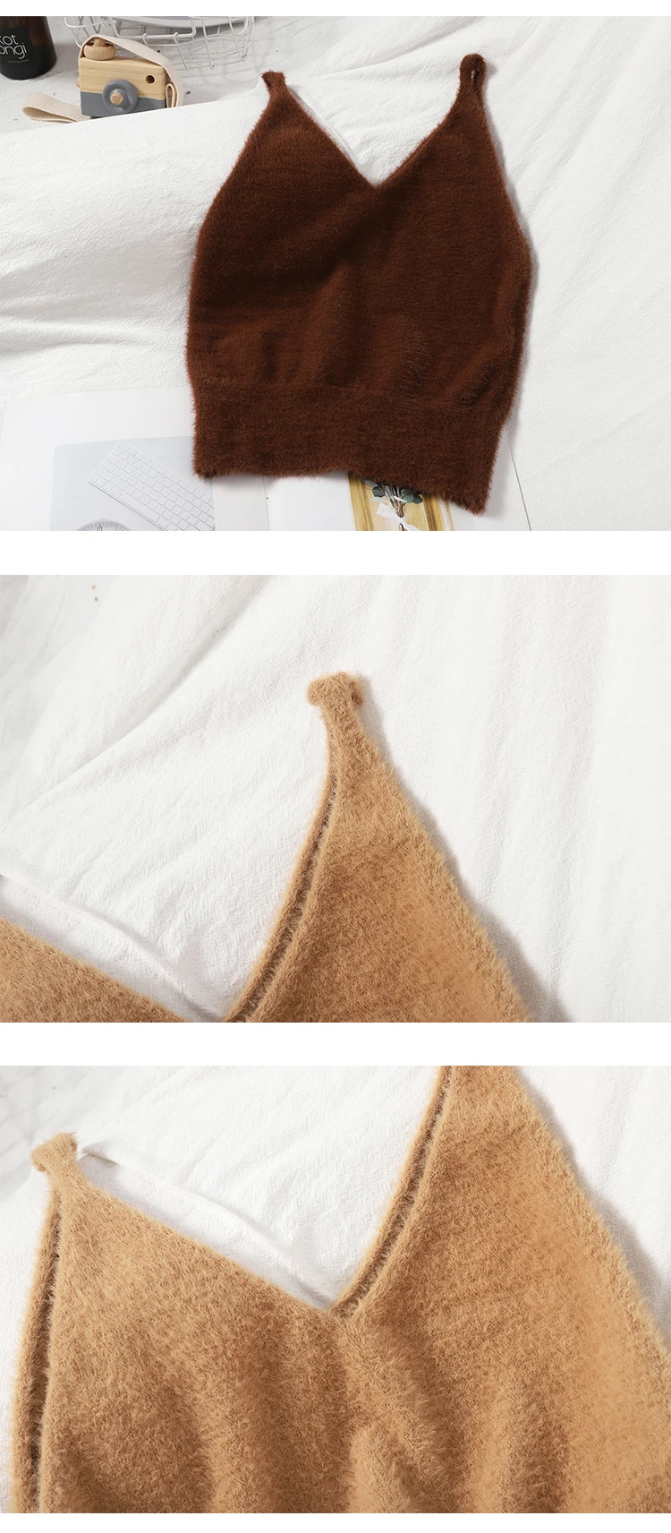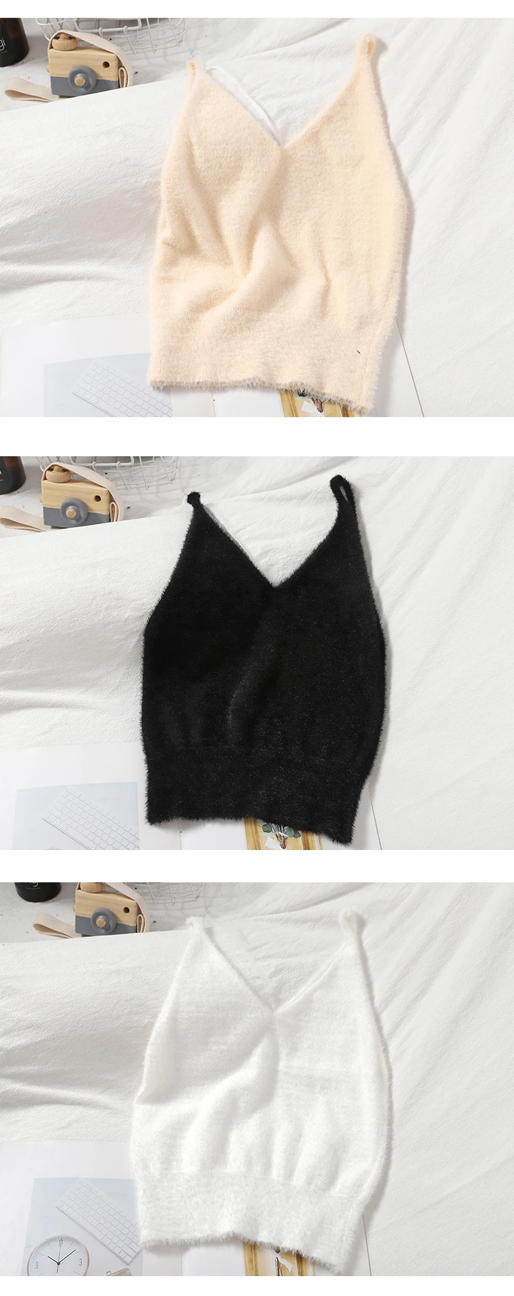 Women Summer Solid Fuzzy Knitted Crop Tops V Neck Fluffy Plain Camis Straps Sexy Cosy Cropped Tops Korean Styles