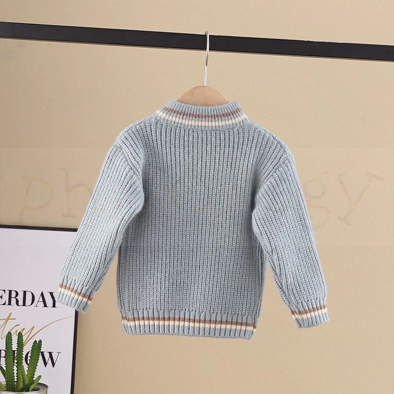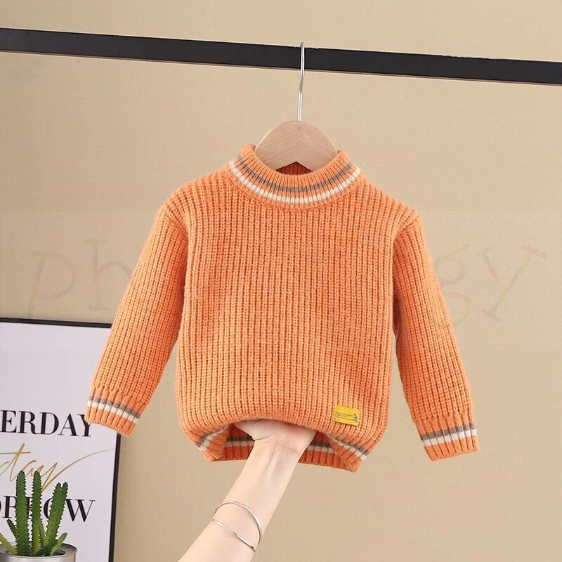 Pure color fall winter boy girl kid thick crew neck shirts solid long sleeve pullover sweater