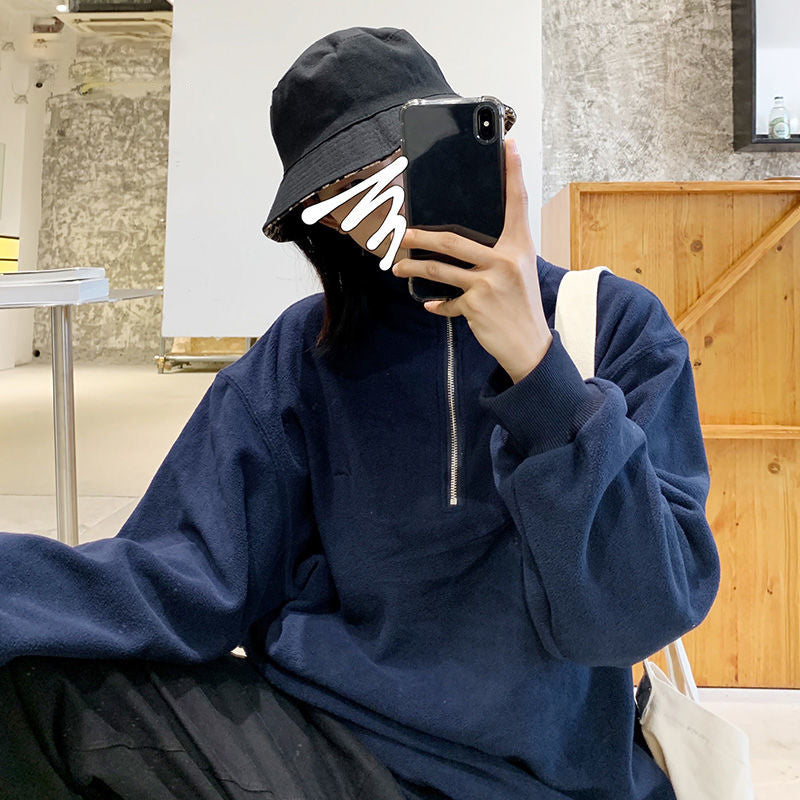 Plush Thick Stand-Up Collar Zipper Casual Sweater