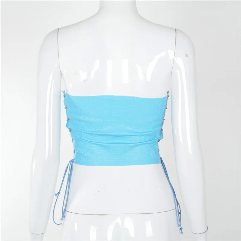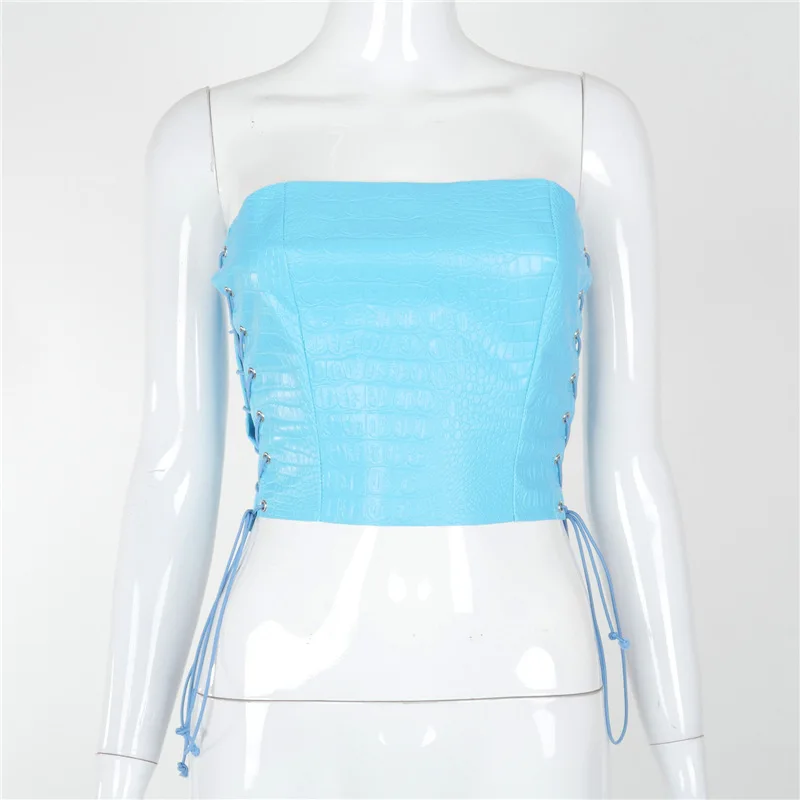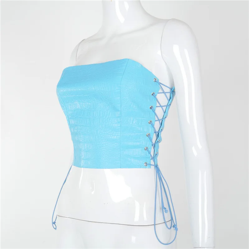 Fashion Women Sexy PU Leather Sleeveless Halter Cross Lacing Vest Femmel Tank Top Streetwear Summer