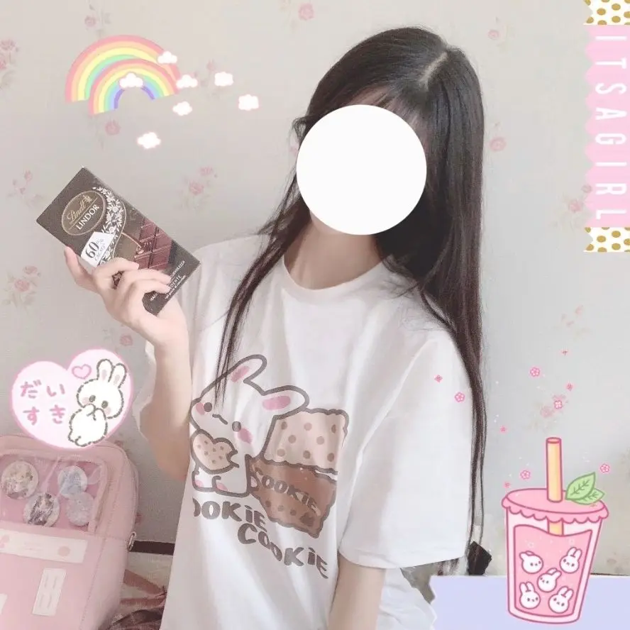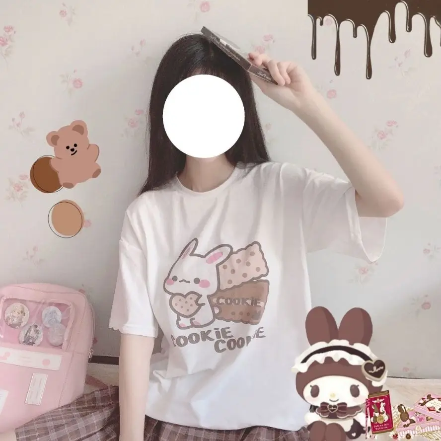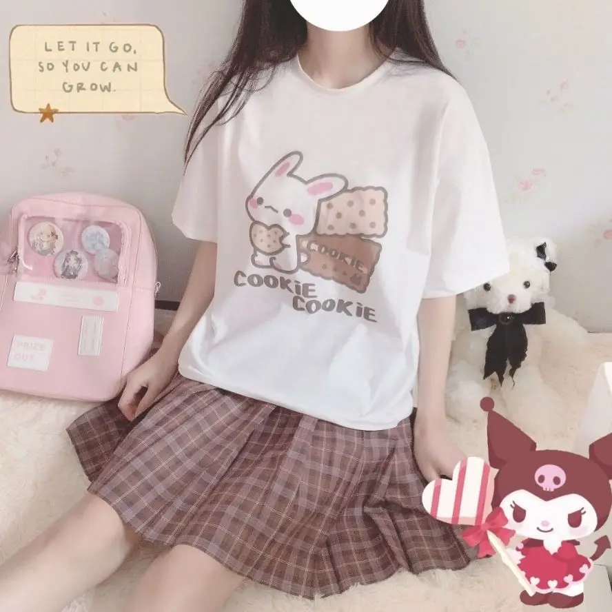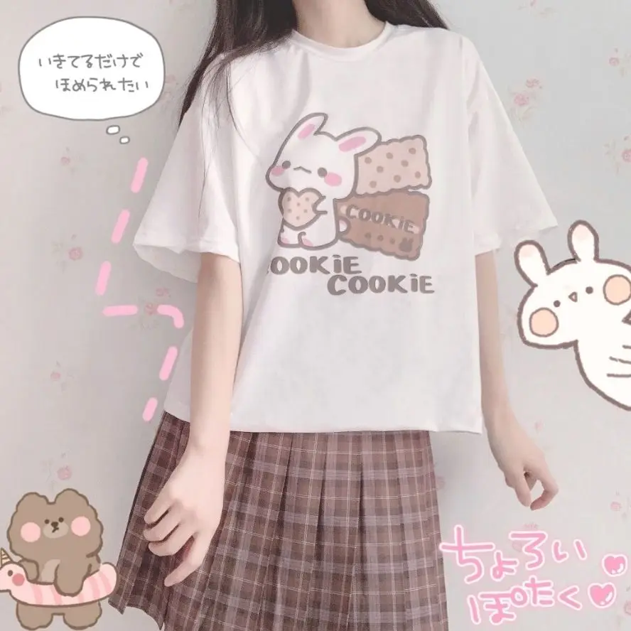 QWEEK Kawaii Tshirt Women 2021 Fashion Women T Shirt Short Sleeve Loose Tops Cute Print Clothes Japanese Jk Graphic T Shirts