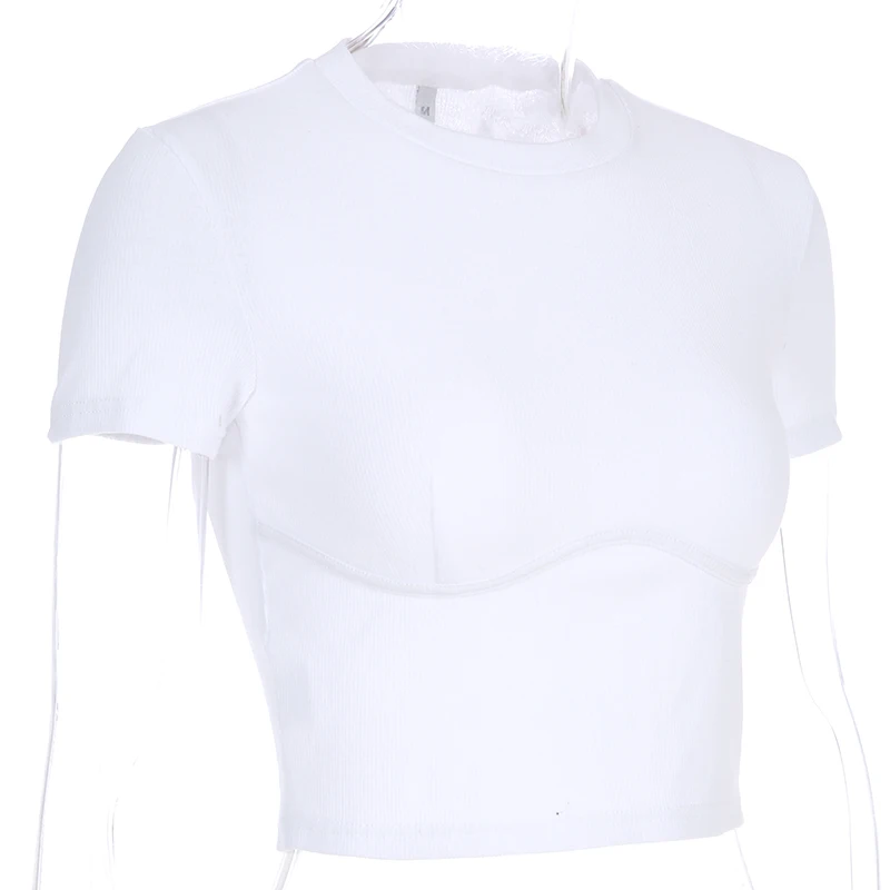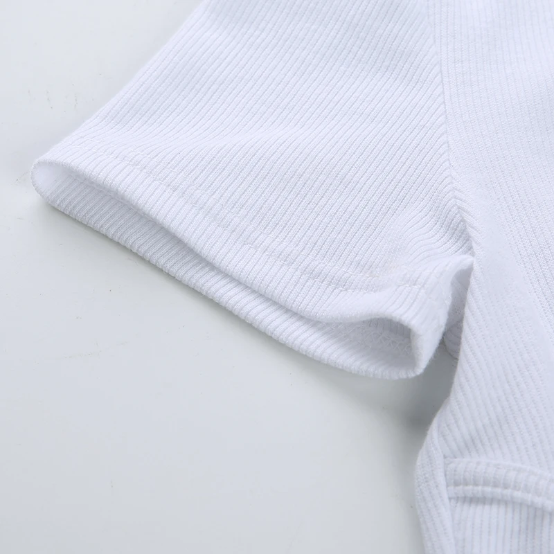 Rapwriter Casual Ribbed Crop Basic White T-Shirt Girl 2020 Summer Streetwear Crew Neck Short Sleeve Stretch Tee Top Feminina