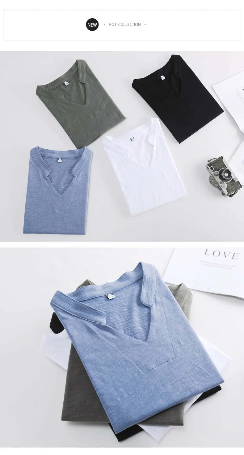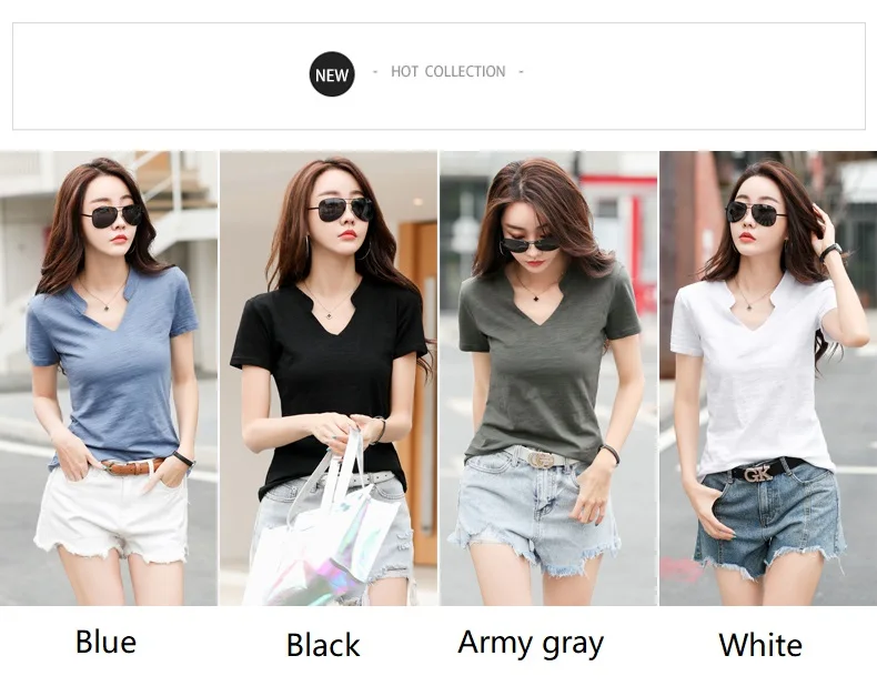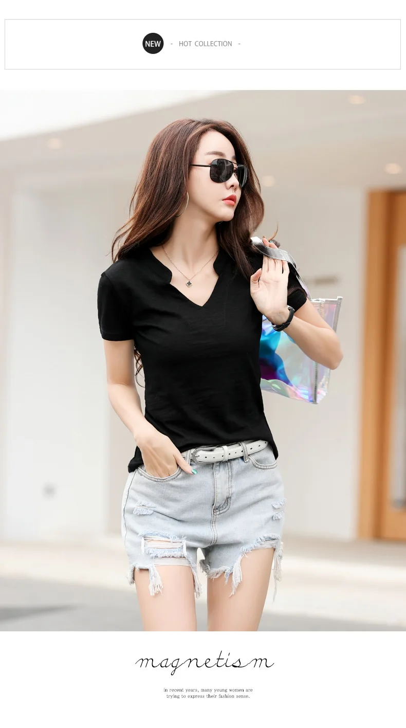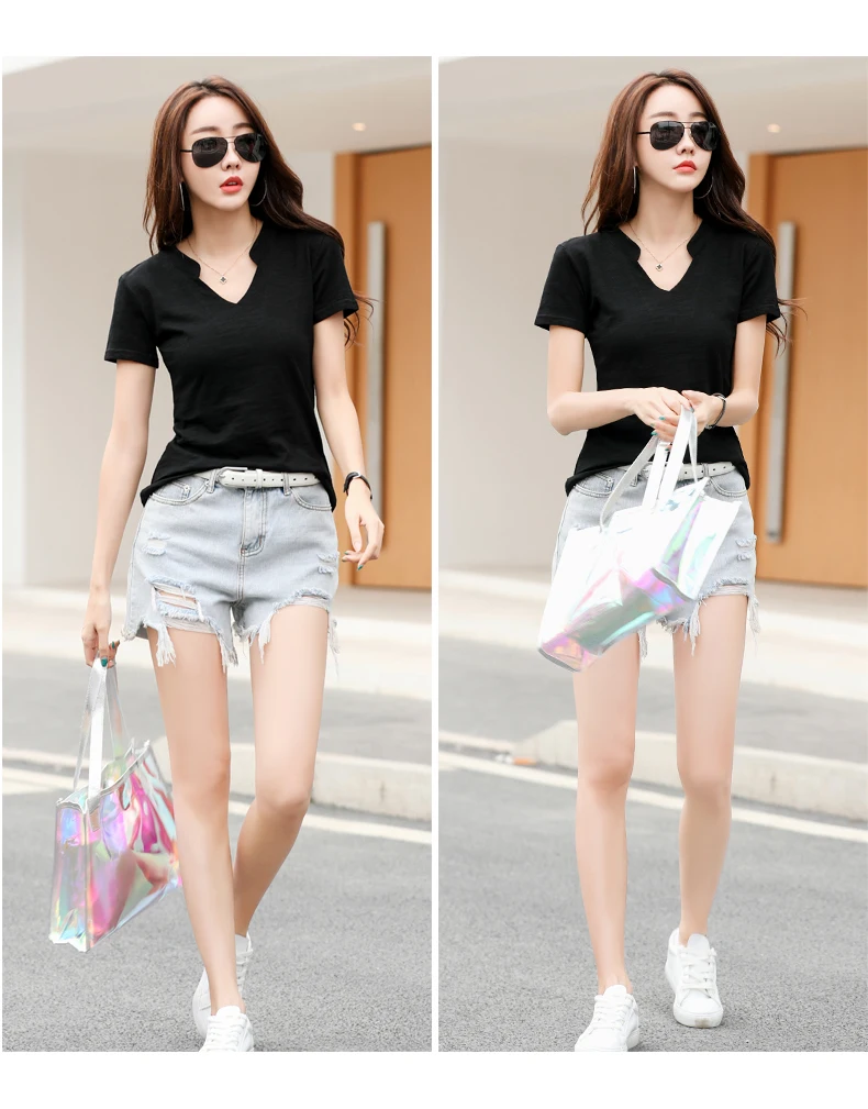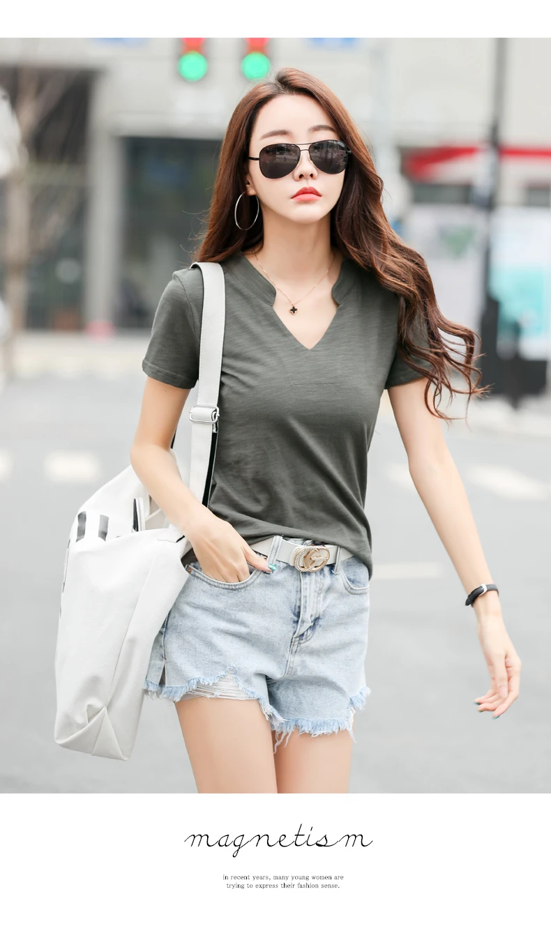 Short Sleeve Bamboo Cotton Women V-Neck T-Shirts 2021 Loose Casual Solid Color Brand T Shirt Ladies Summer Spring All-Match Tops