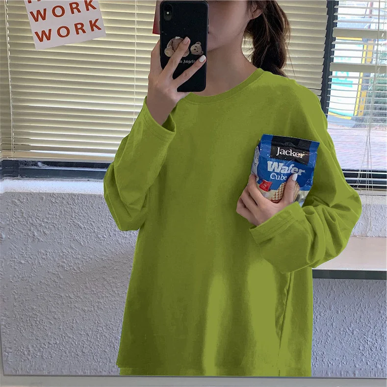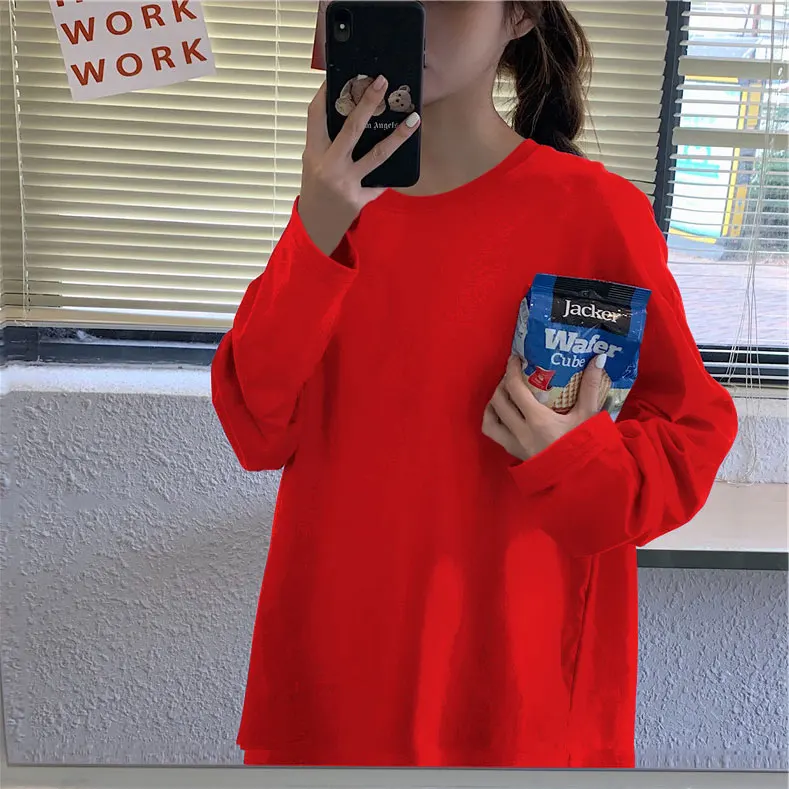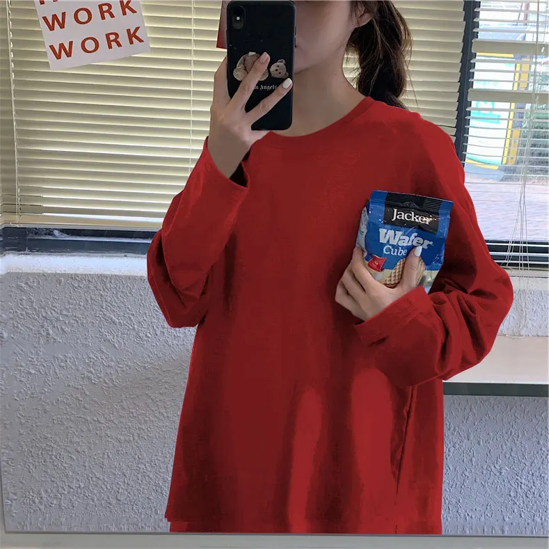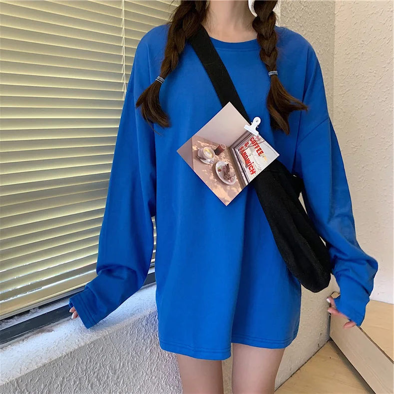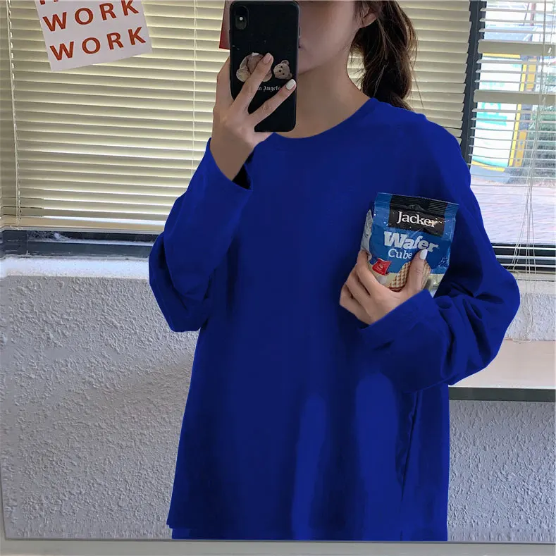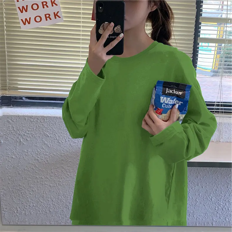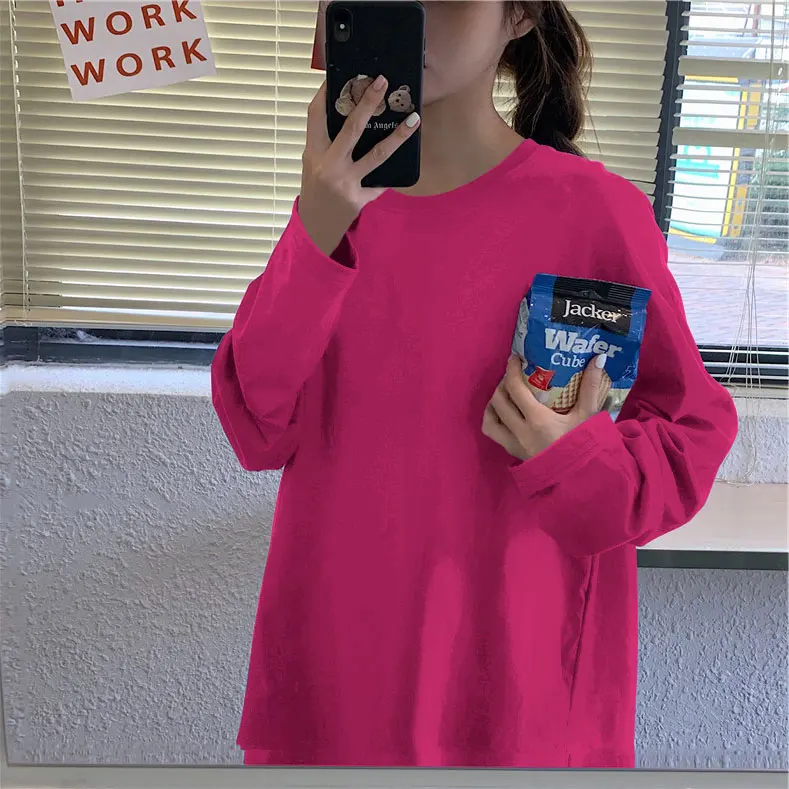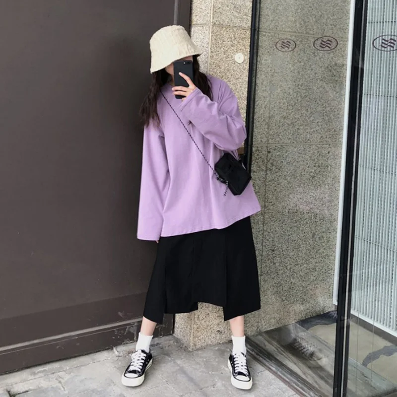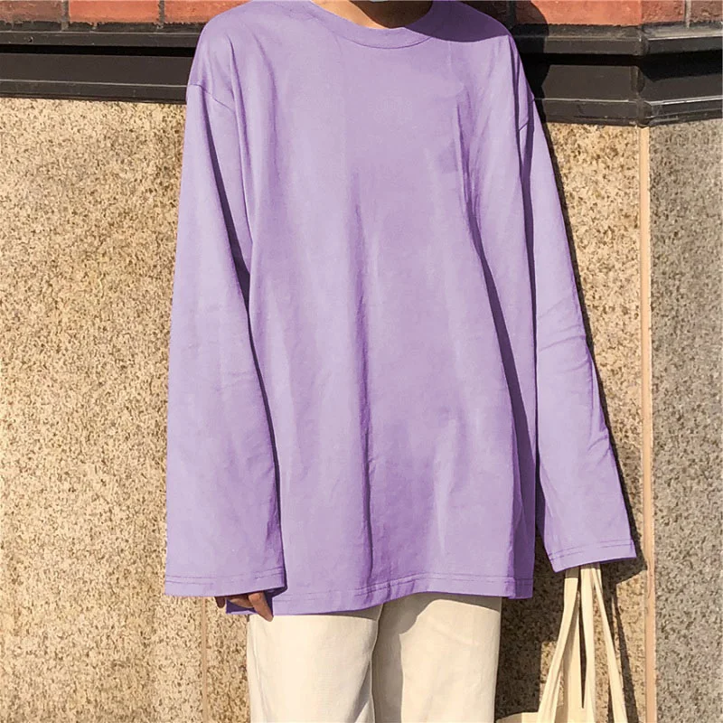 Summer 2021 new women's Fashion Top plus size Korean O-neck long sleeve purple T-shirt