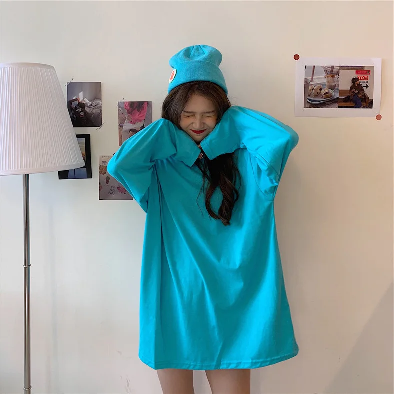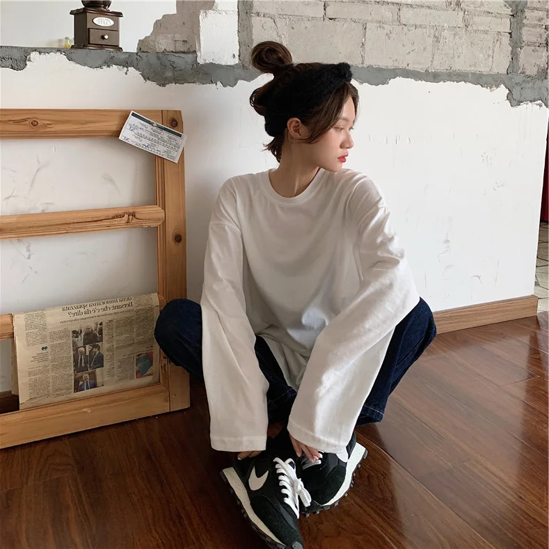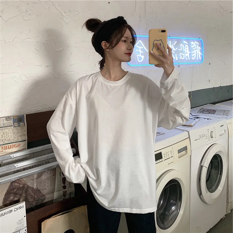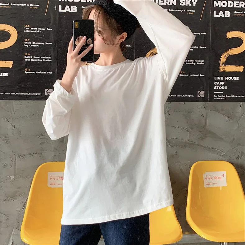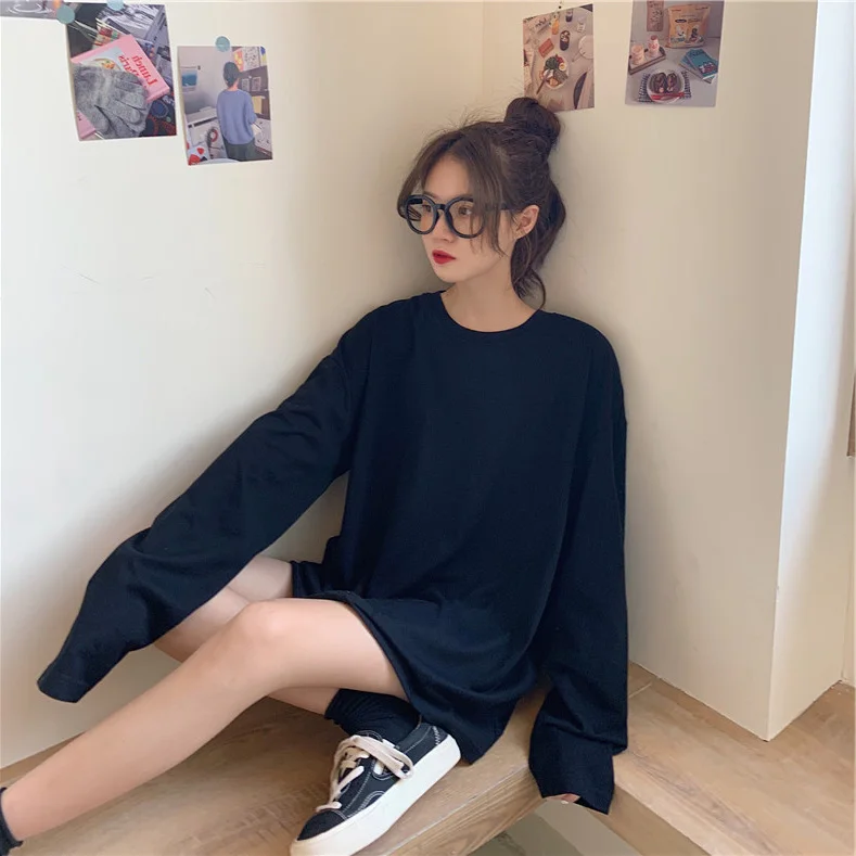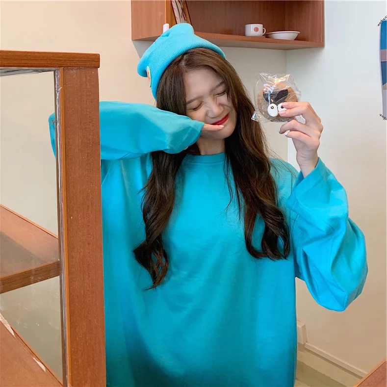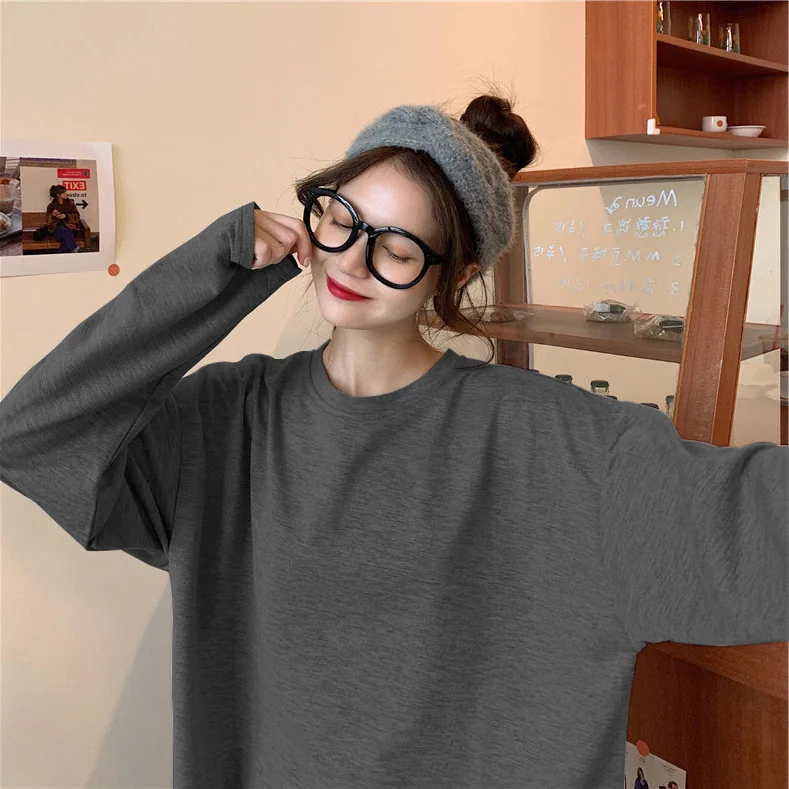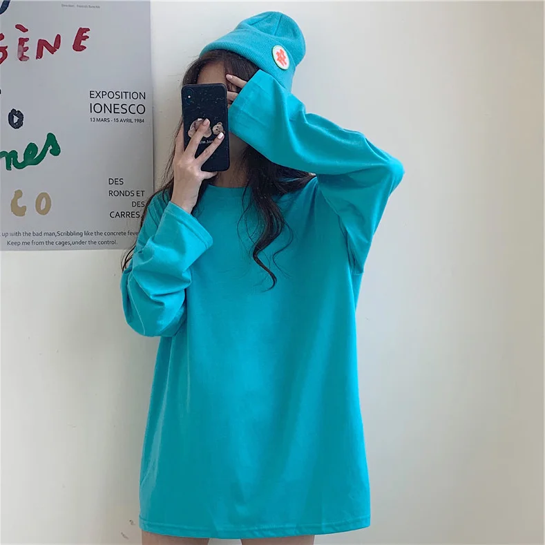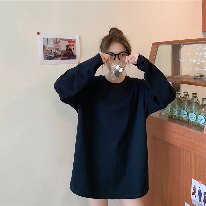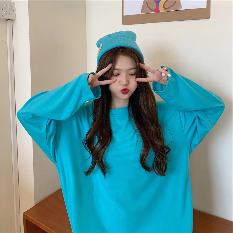 Summer 2021 new women's Fashion Top plus size Korean O-neck long sleeve purple T-shirt