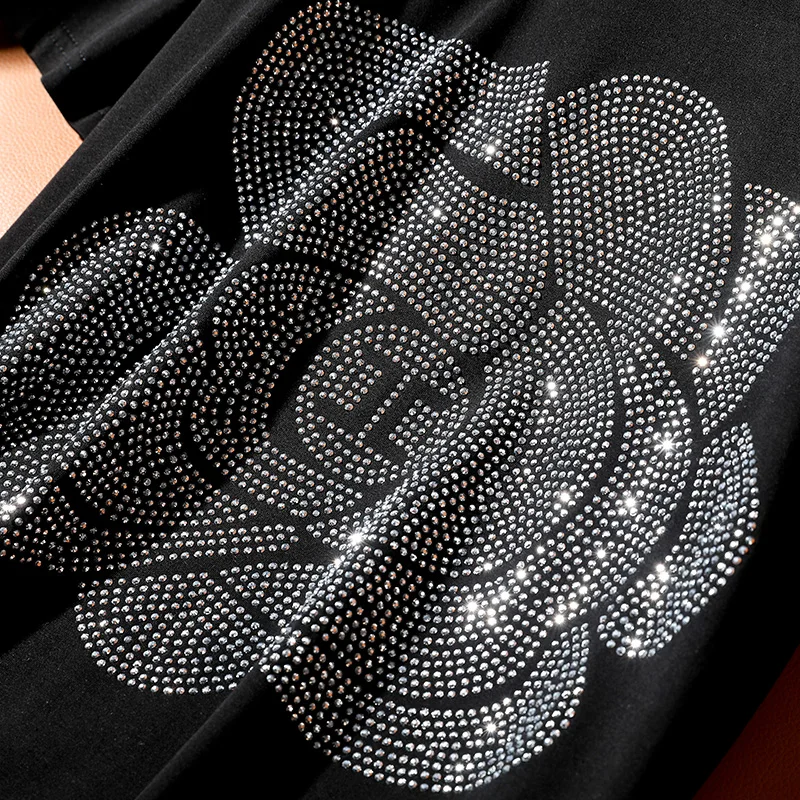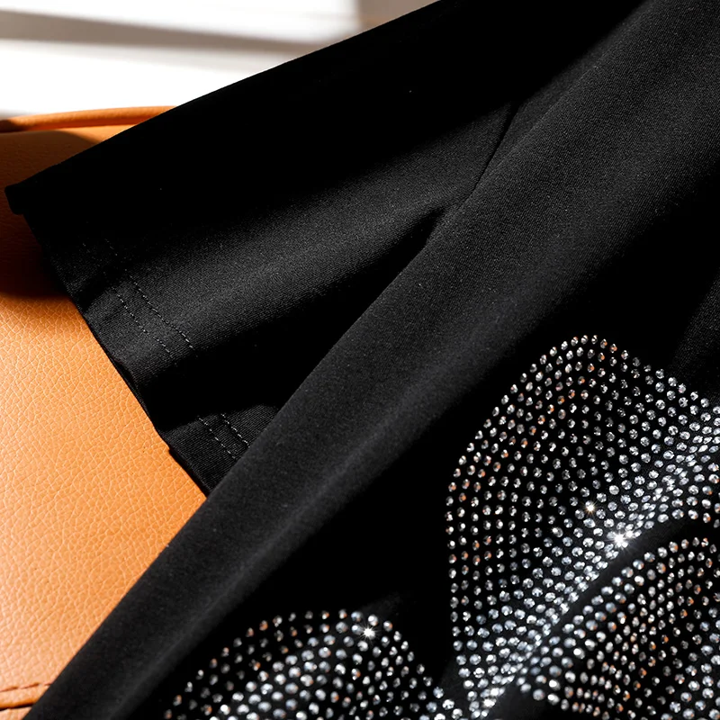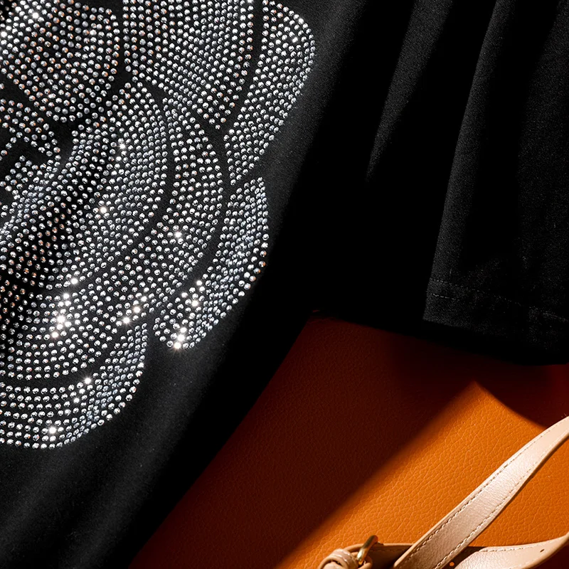 Summer new fashion Loose plus size short-sleeve T-shirt for women casual personality Flowers pattern hot diamond female tops