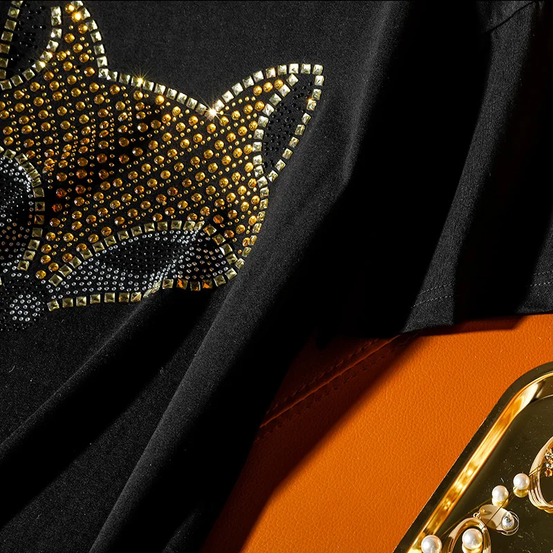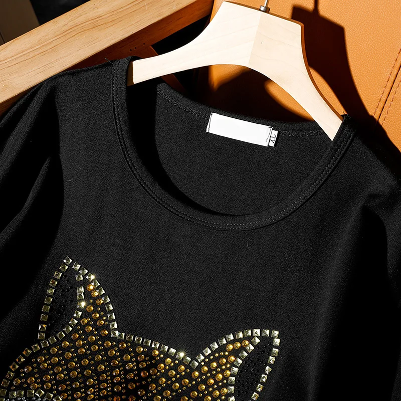 Summer Women's clothing fashion hot drilling fox printing short-sleeved T-shirt female Leisure loose Large size 5XL Diamond tops
