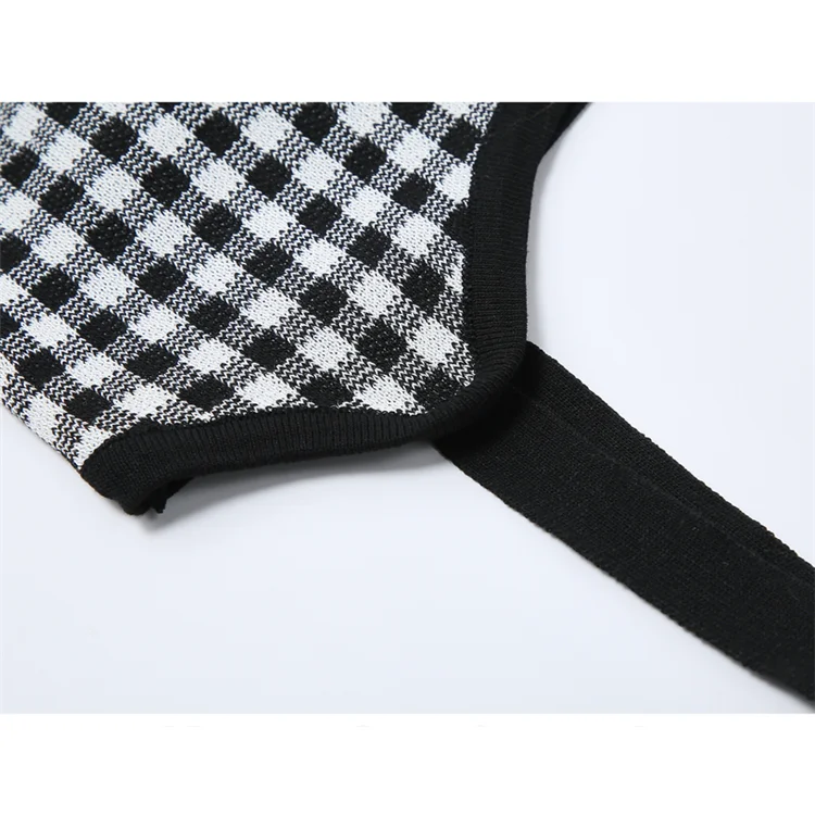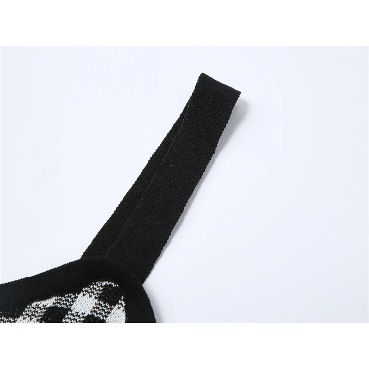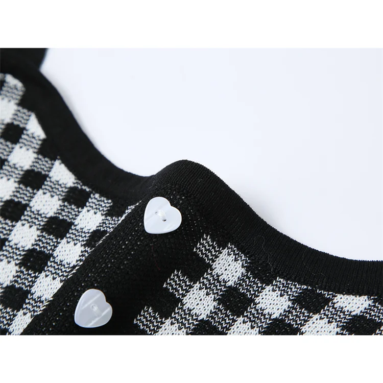 Sweet Plaid Tank Tops Sleeveless Bodycon Crop Strapl Love Button Sexy Camisole Off Shoulder Party Club Streetwear Clothes Tops