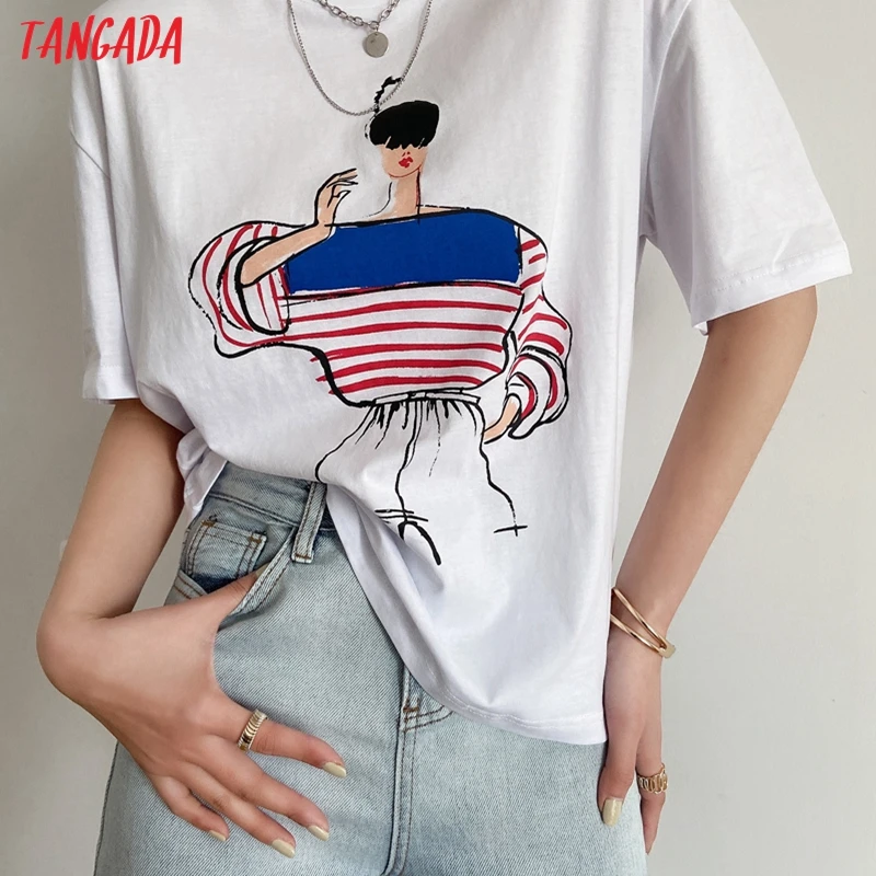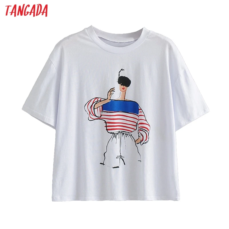 Women Print Cotton T Shirt Short Sleeve O Neck Tees Ladies Casual Tee Shirt Street Wear Top AI59