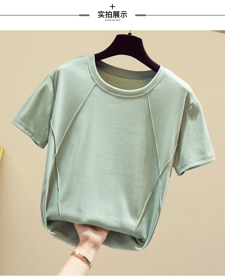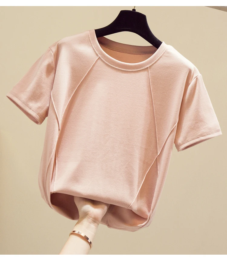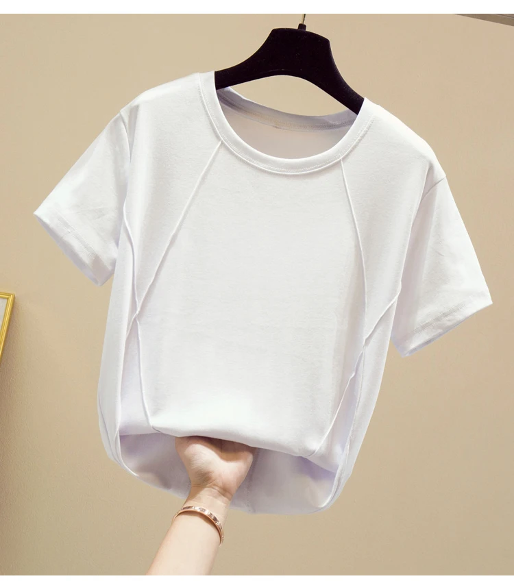 Tee Shirt Female Soft Cotton Casual Women Tops O-Neck Summer T-Shirt Elasticity Short Sleeve Ladies Fashion Tshirts White