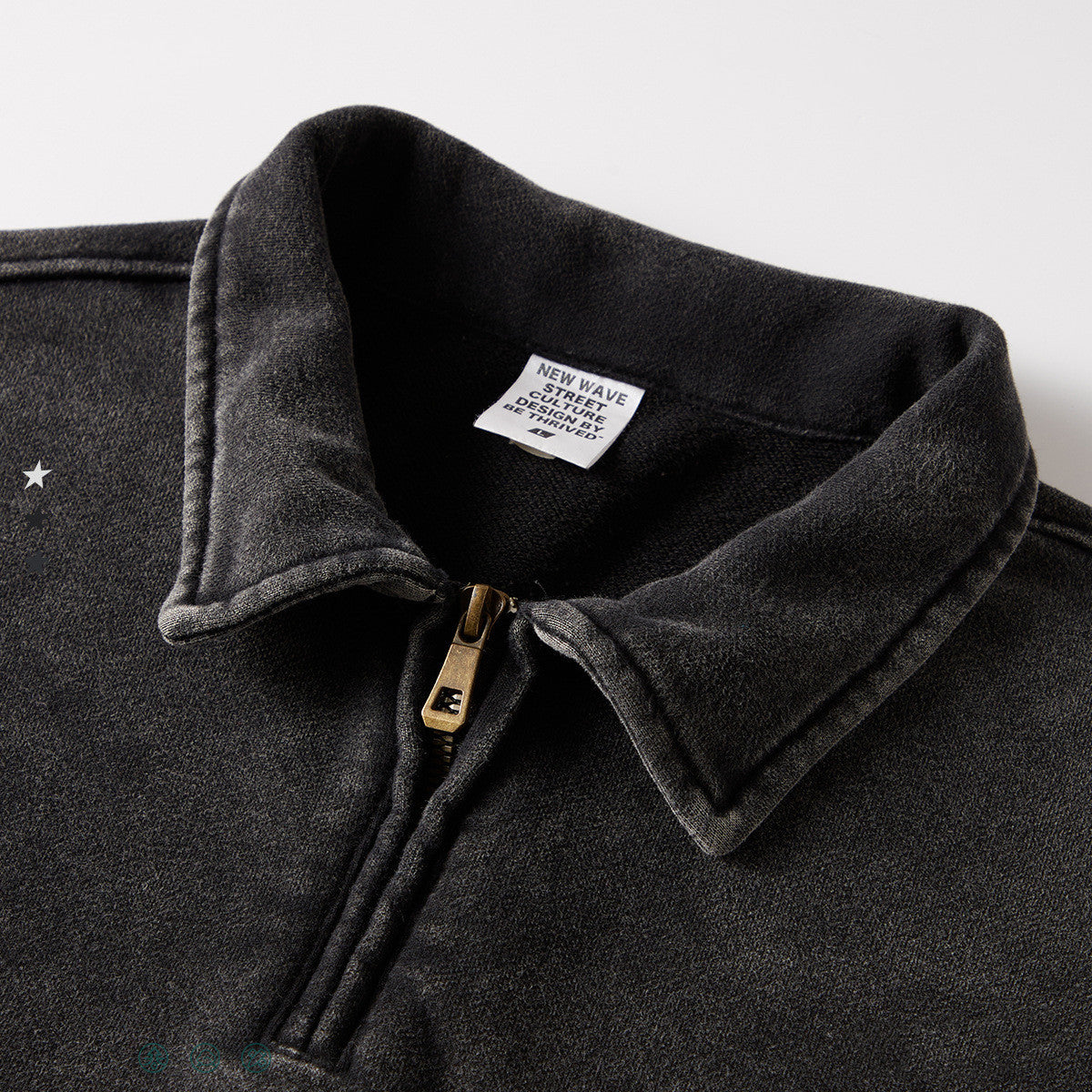 Vintage Washable Lapel Half Zip Short Sweater For Women