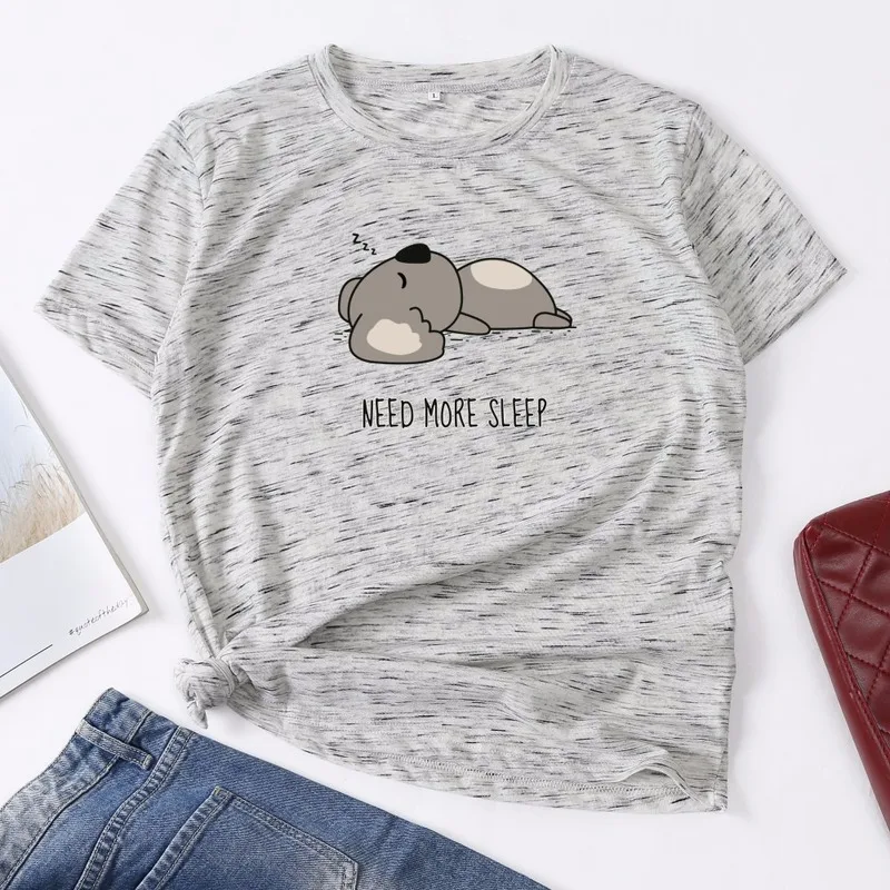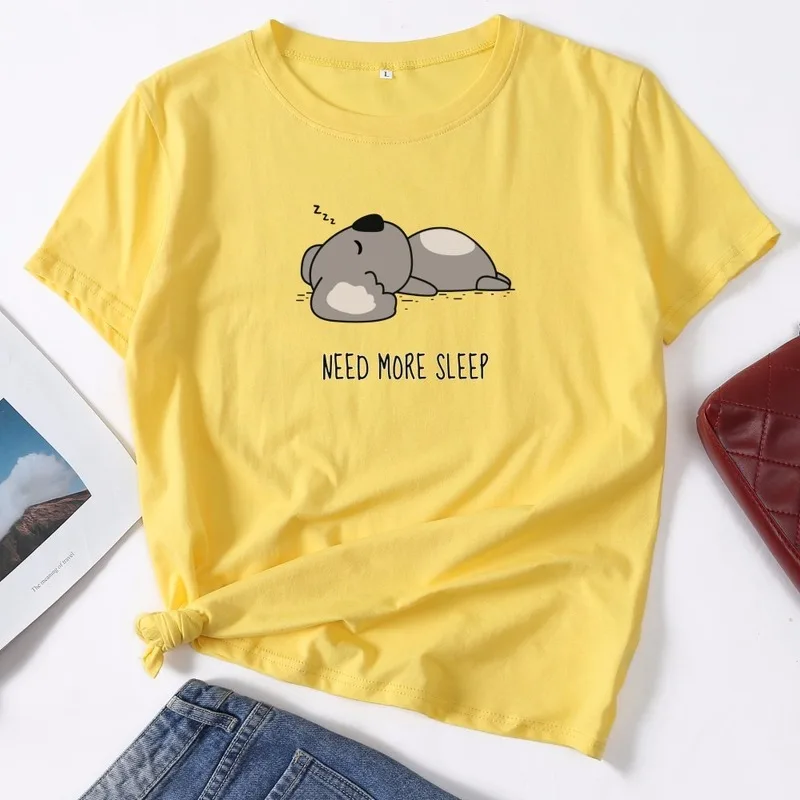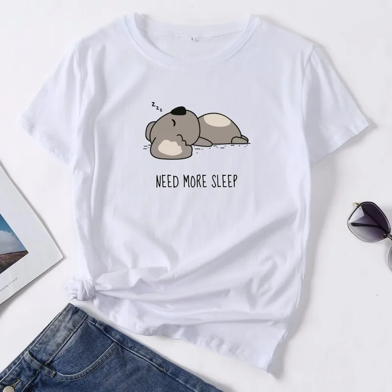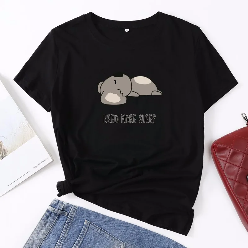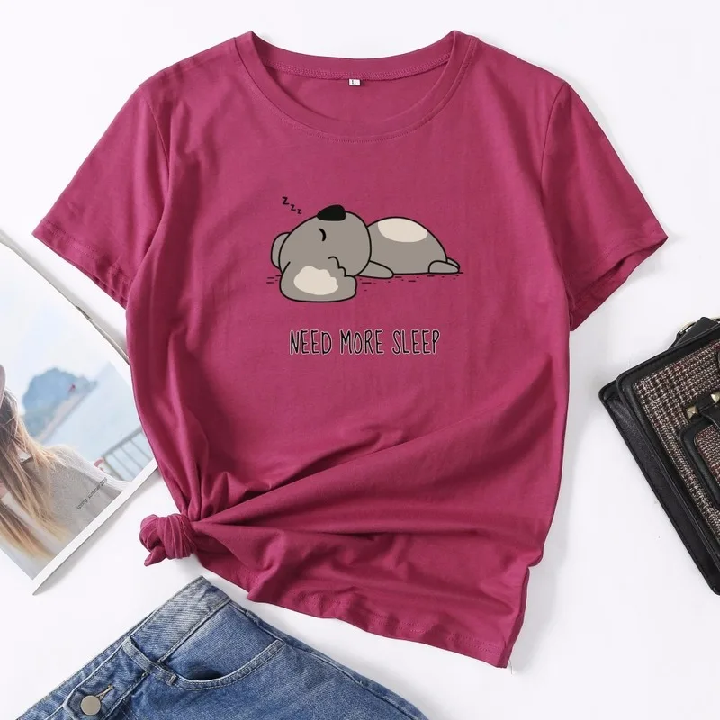 Women Summer Short Sleeve 100% Cotton T shirt Plus Size S-5XL Oversize Lazy Sleep Koala Print Casual T-shirt O Neck Lady Tee Top