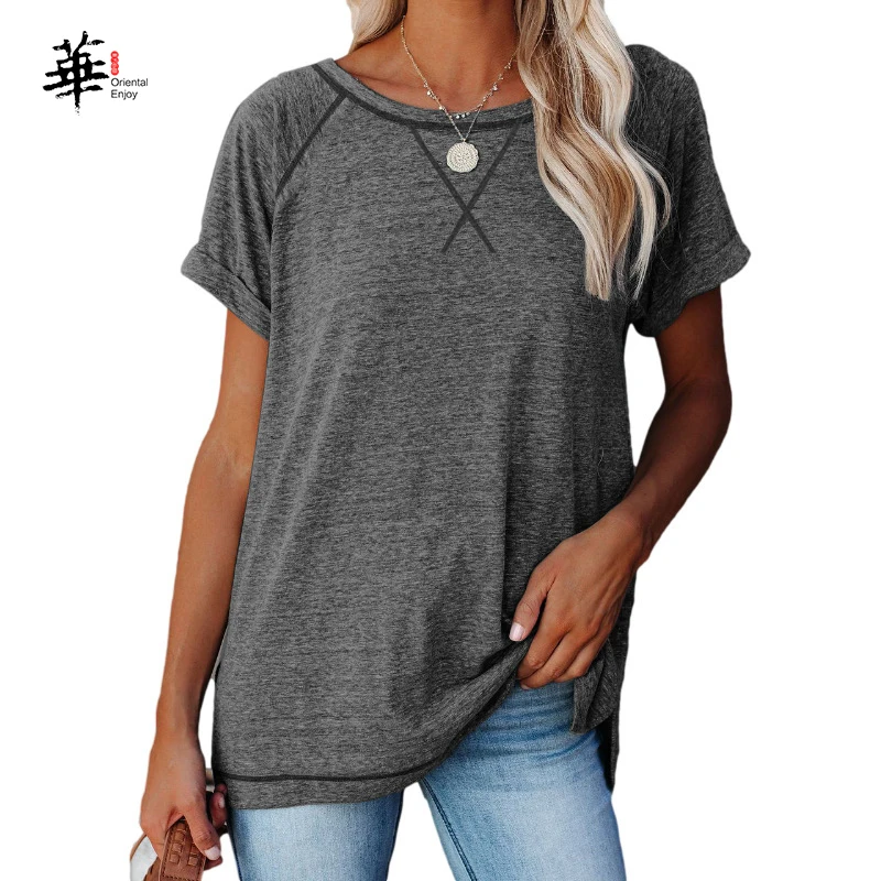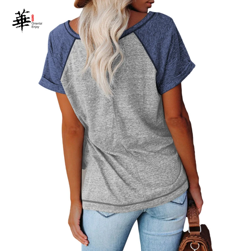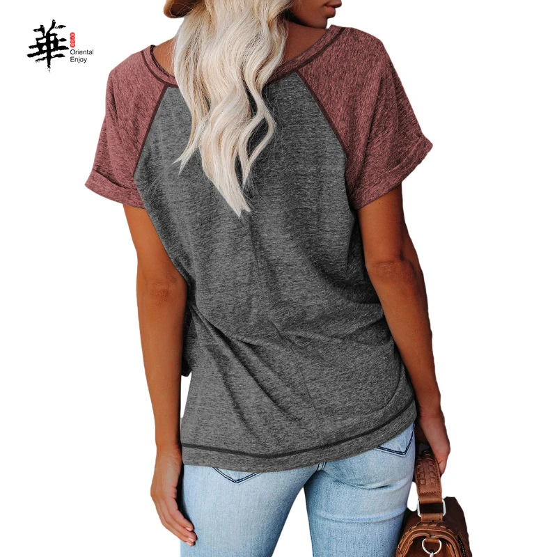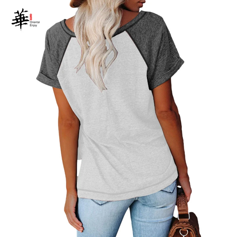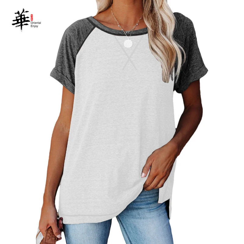 Women Summer T-Shirt Casual New Arrival Loose O-Neck Splice Cotton Women Tops T-Shirt for Girls
