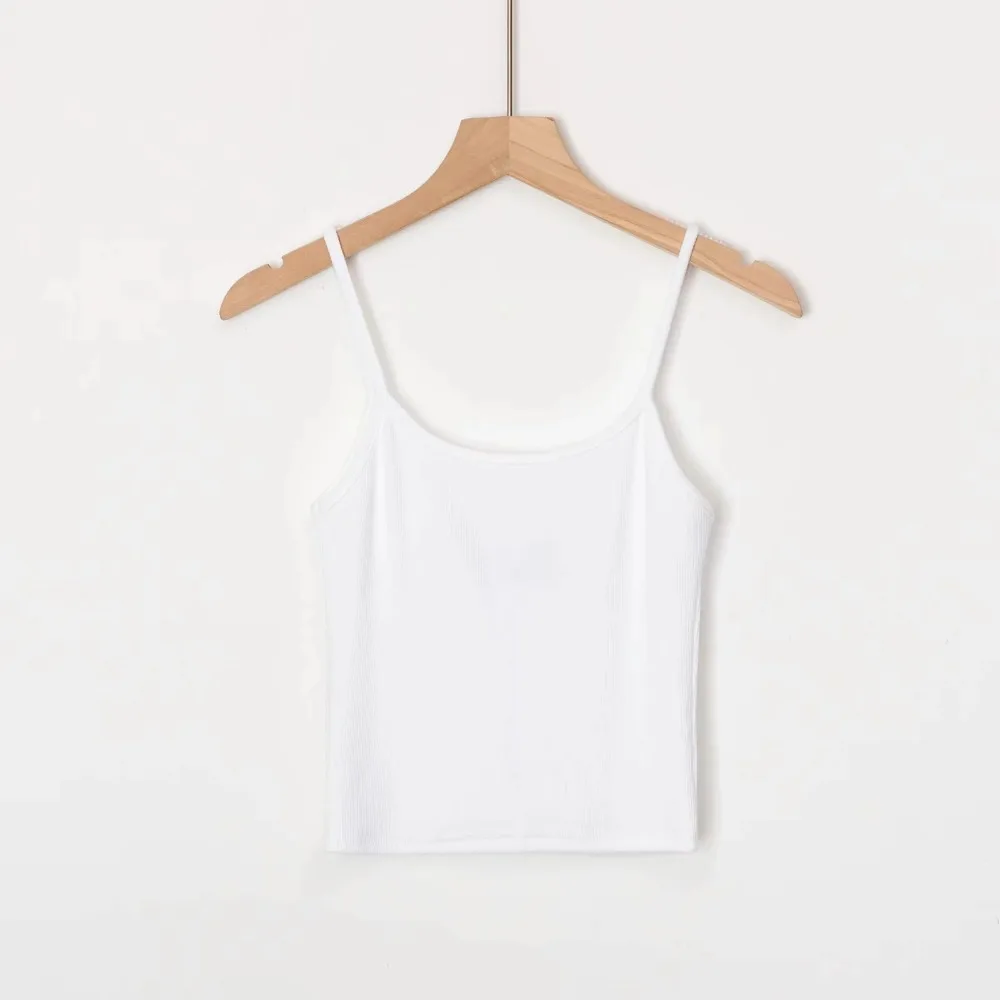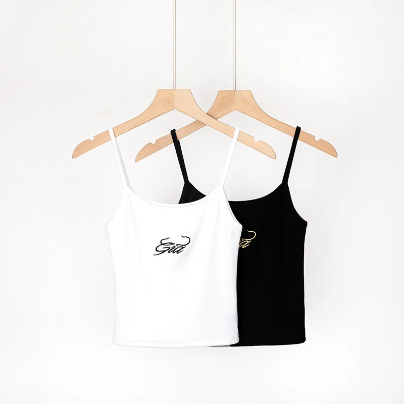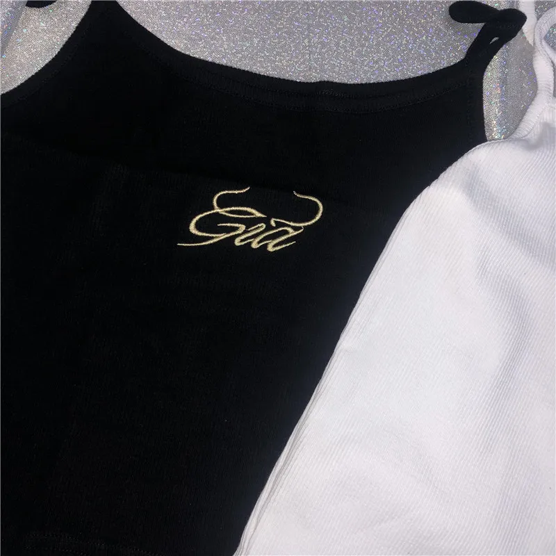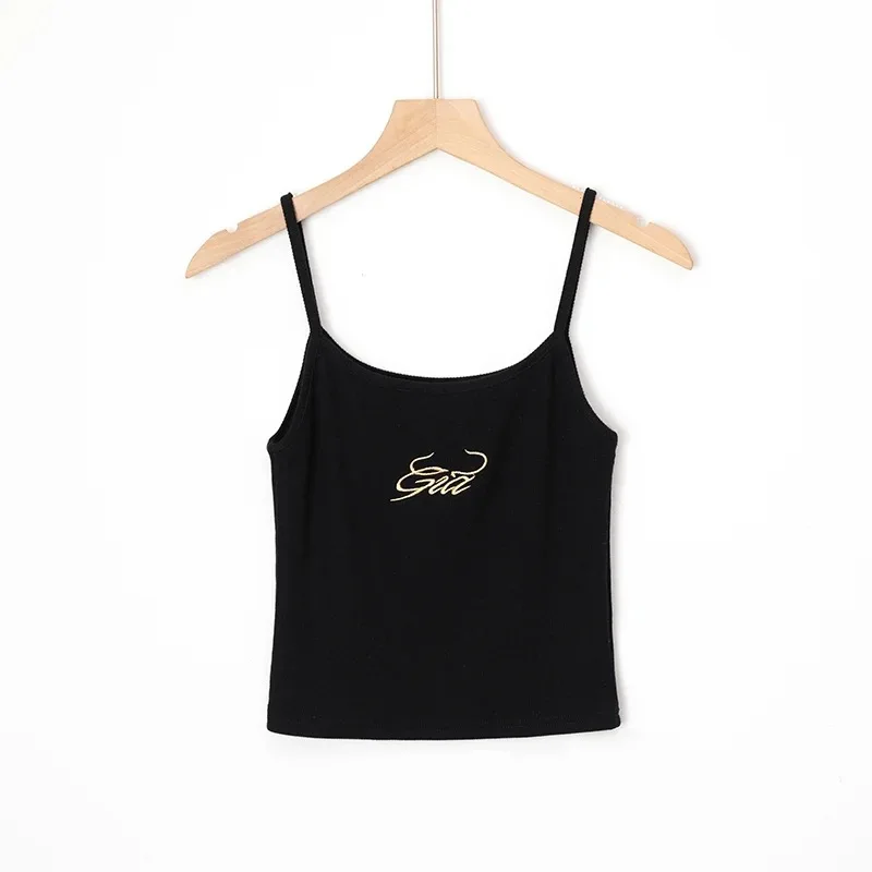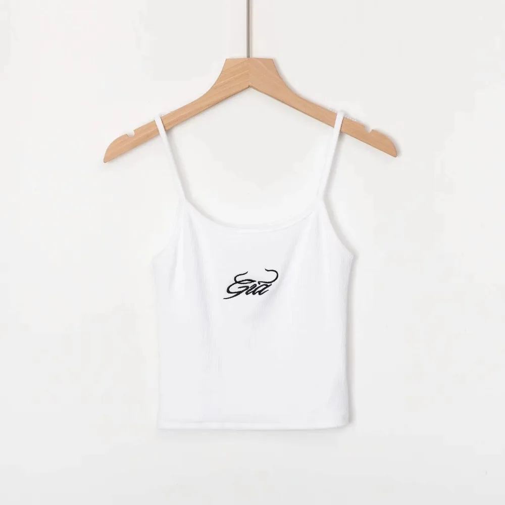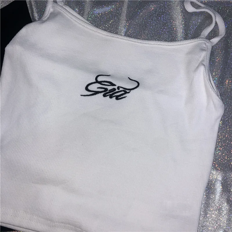 Women Summer Vintage Retro Cotton Gia Letters Embroidery Crop Top Cami White Black 90s Casual Solid Female