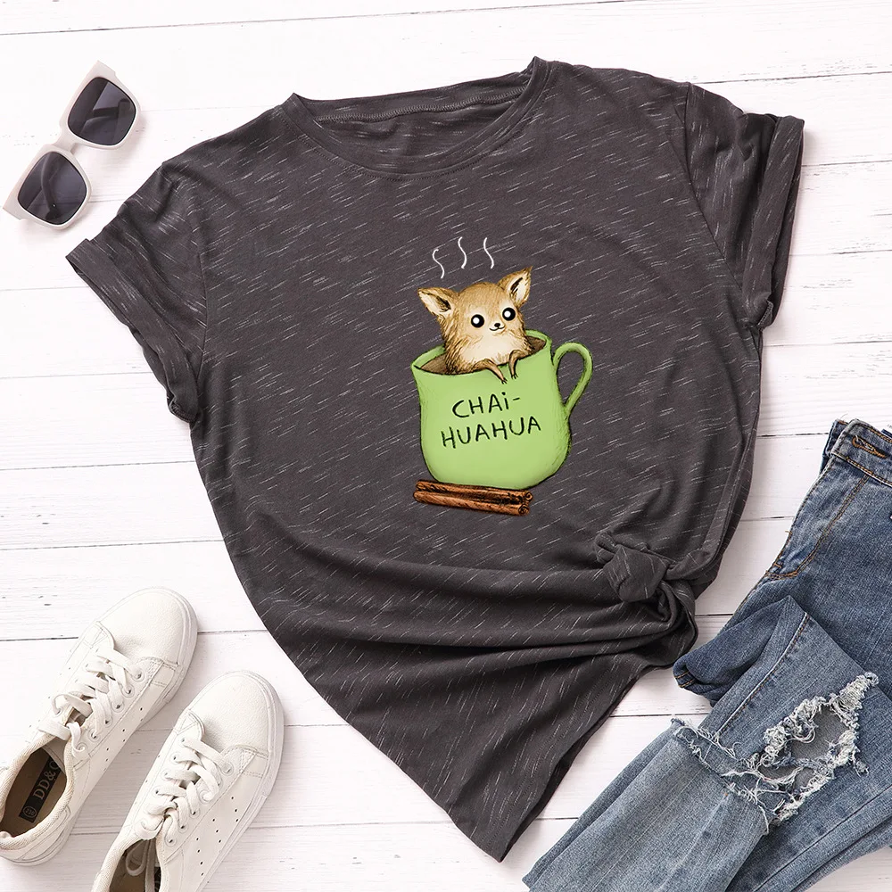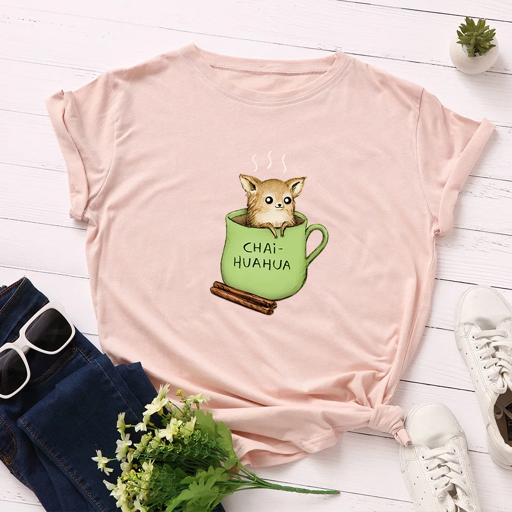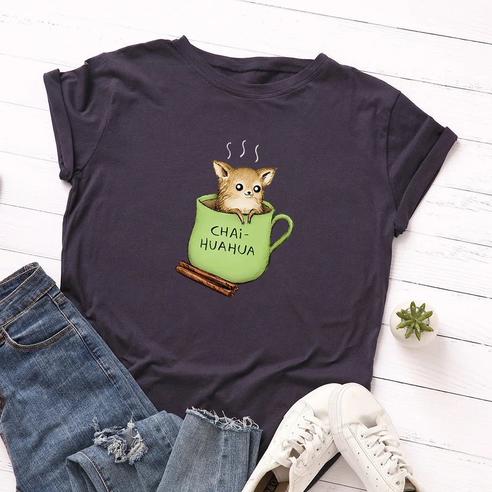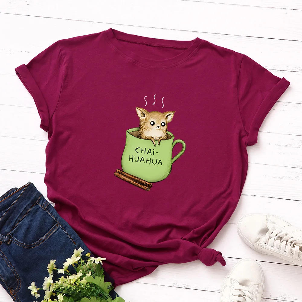 Women T-Shirt Summer Cotton S-5XL Plus Size Short Sleeve Cartoon Cute Dog Chihuahua Print Woman Casual Tshirts Ladies Tops Tees