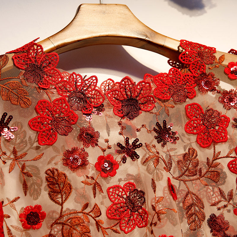 Made from high-quality lace material, this blouse is not only stylish but also durable and long-lasting. The wine red color adds a pop of vibrancy to any outfit, making it a standout piece in your collection.