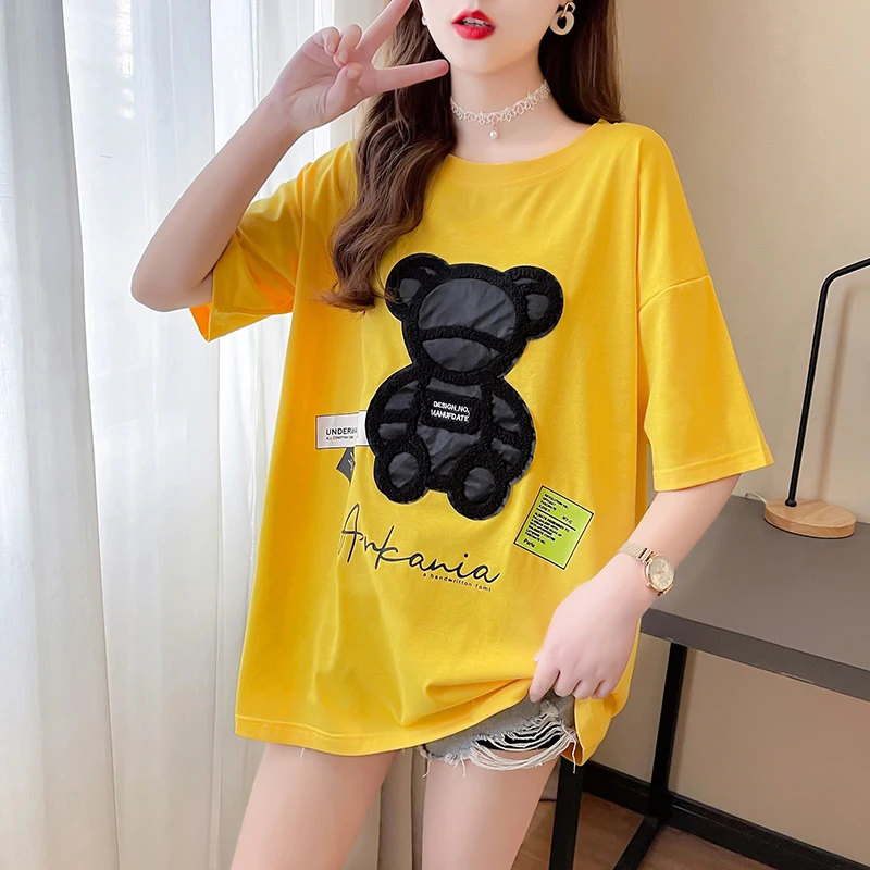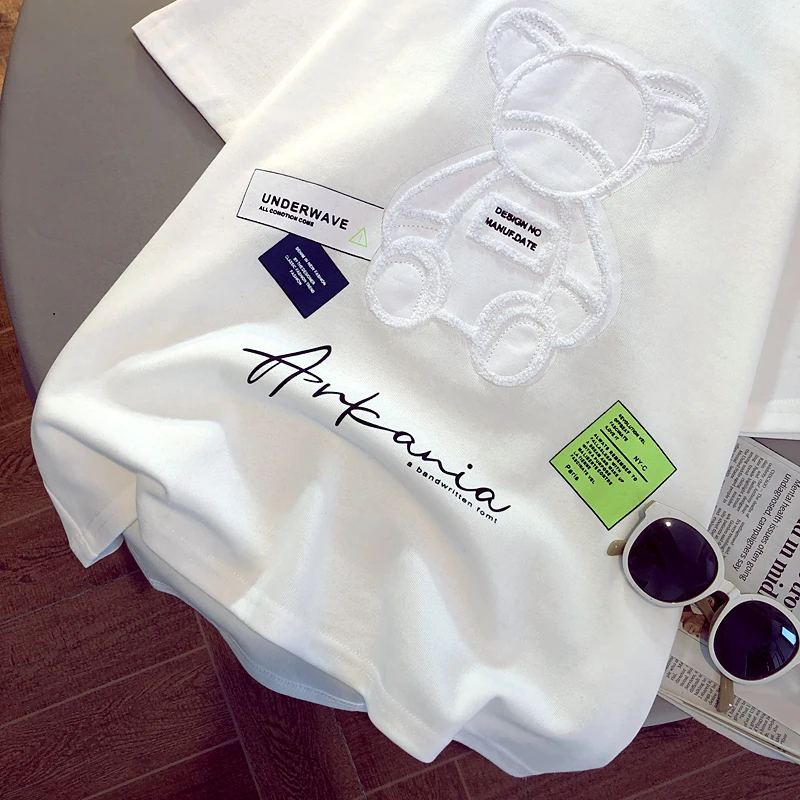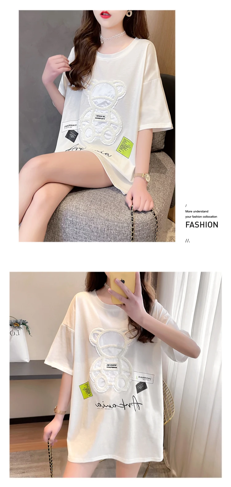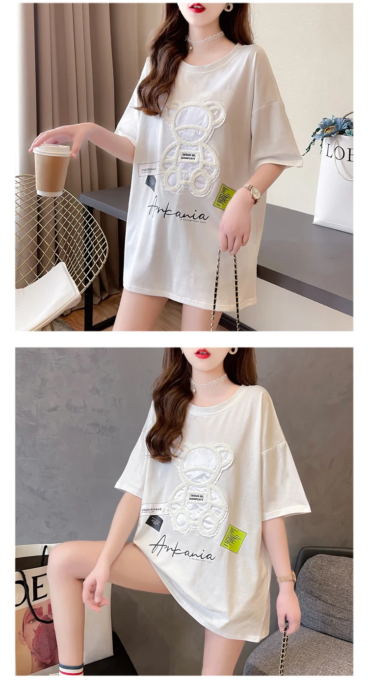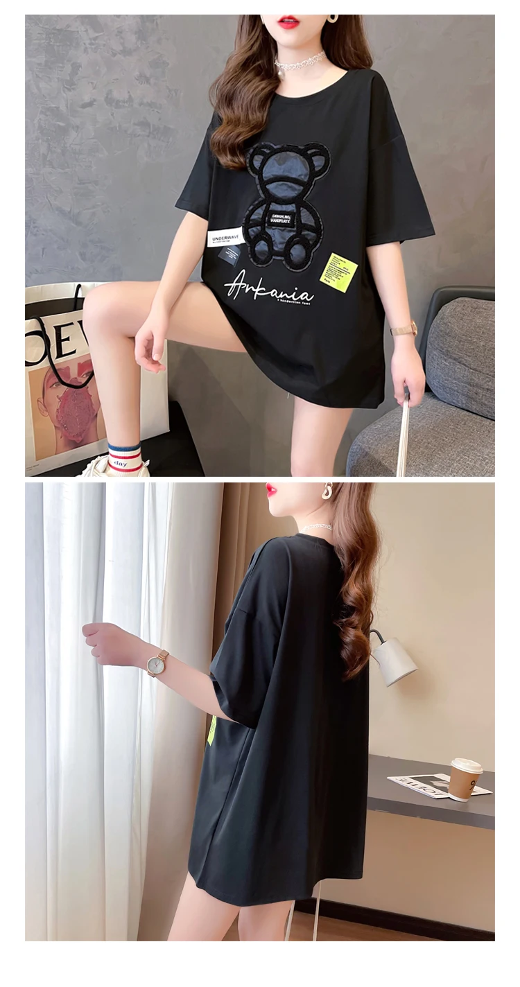 Women's T-shirts Harajuku Girls Plus Oversize Tops O-neck Short Sleeves Loose Summer Tshirt Embroidery Bear White Black Tees