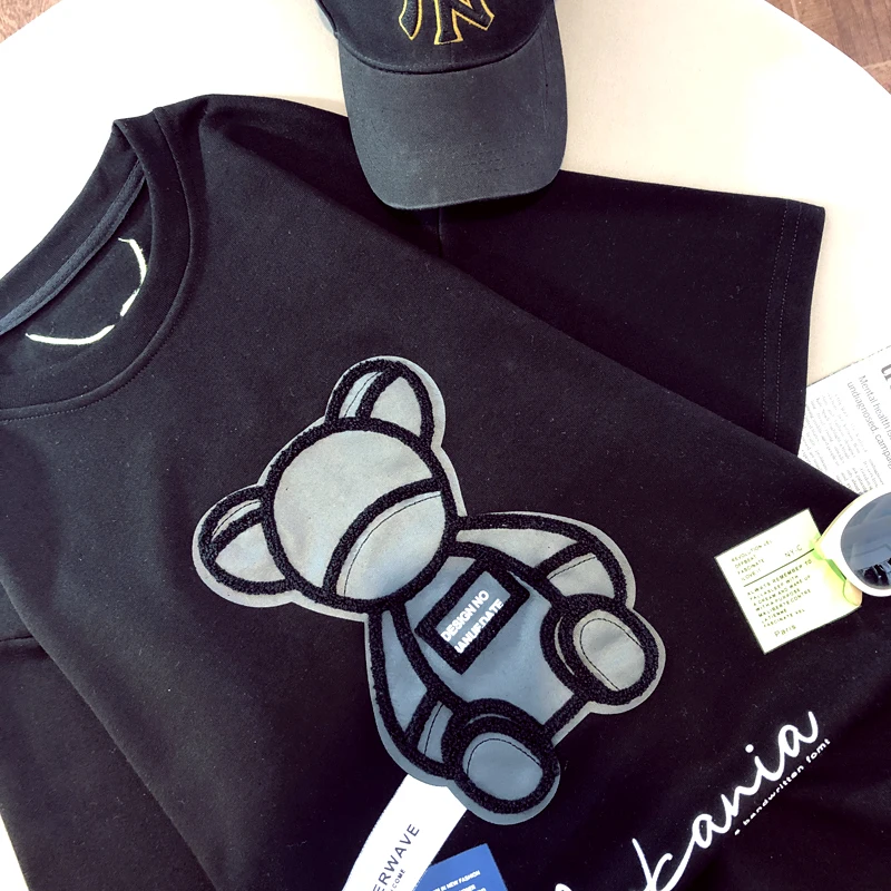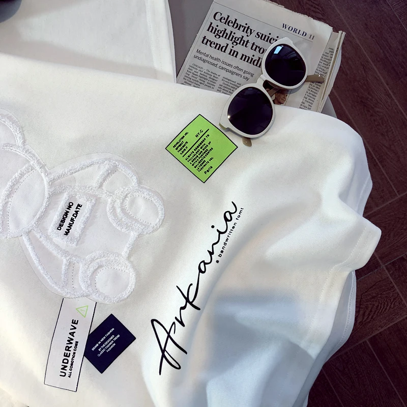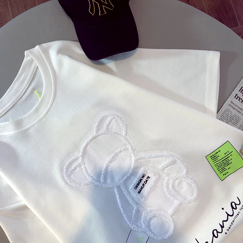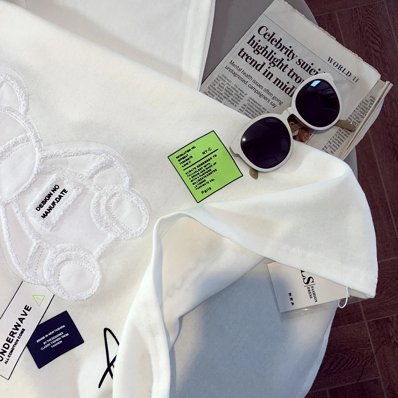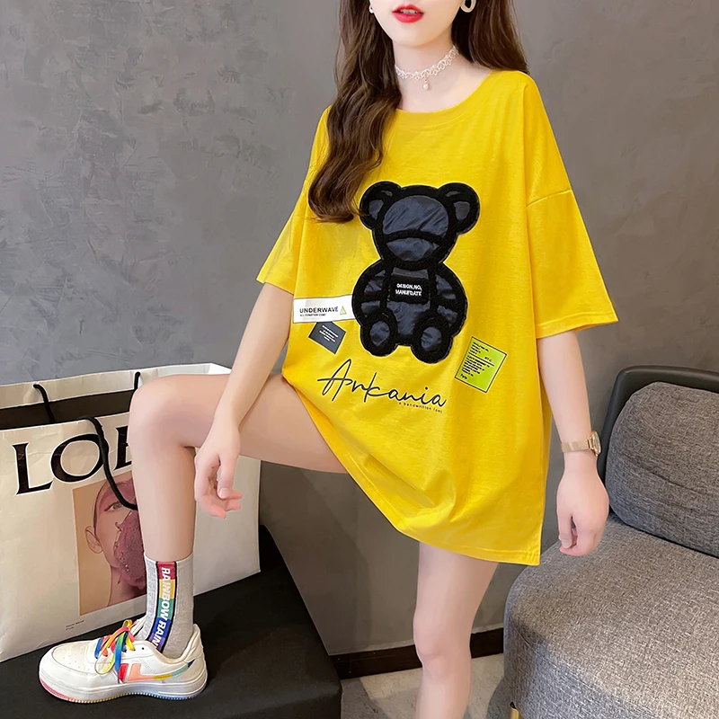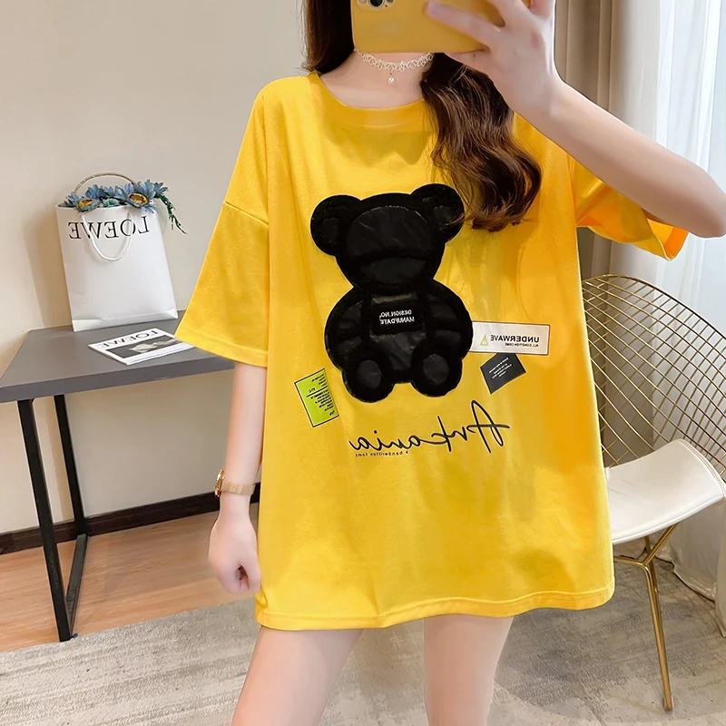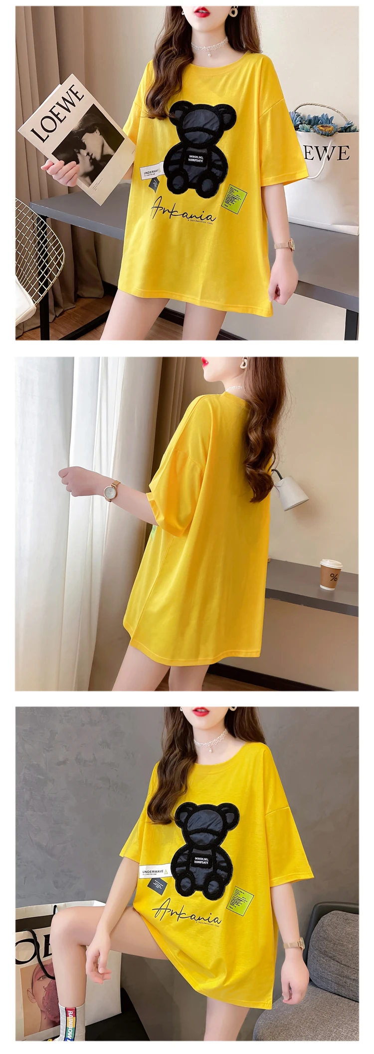 Women's T-shirts Harajuku Girls Plus Oversize Tops O-neck Short Sleeves Loose Summer Tshirt Embroidery Bear White Black Tees