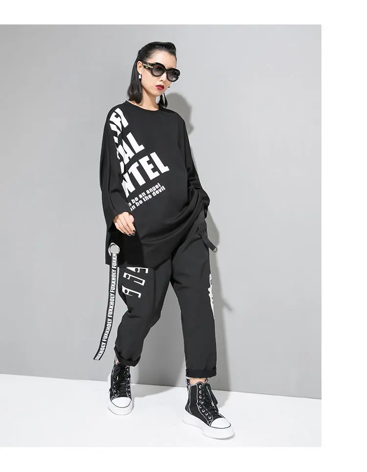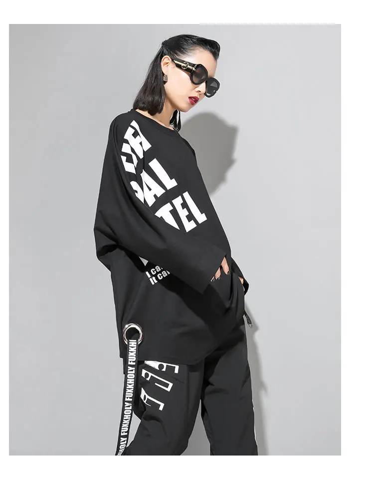 Drilling Ribbon Print T Shirt Women Clothes Fashion Pullover Tide Letter Irregular T Shirt Personality New WQR1661